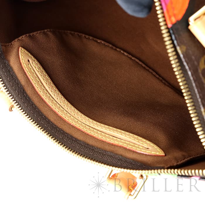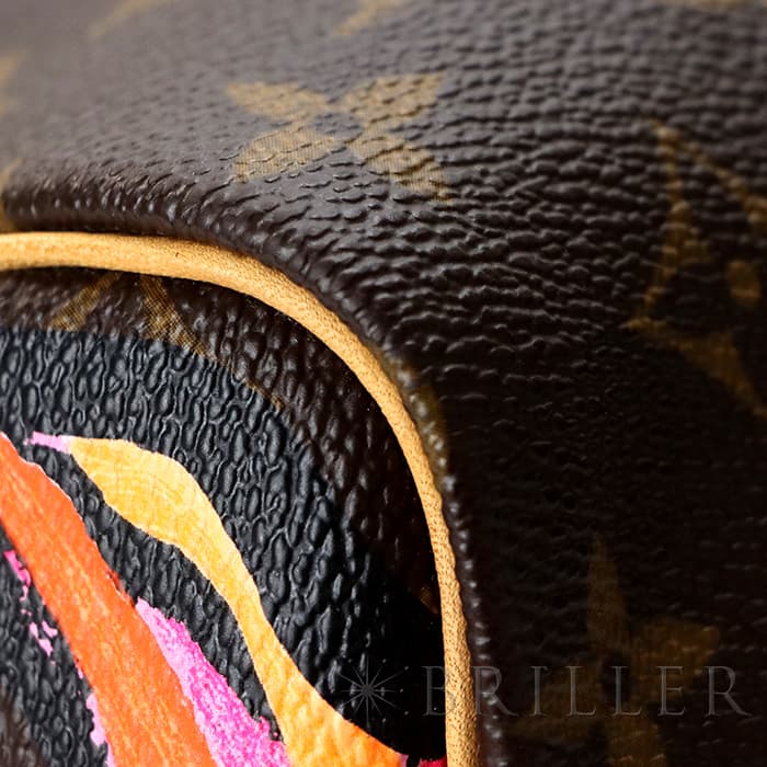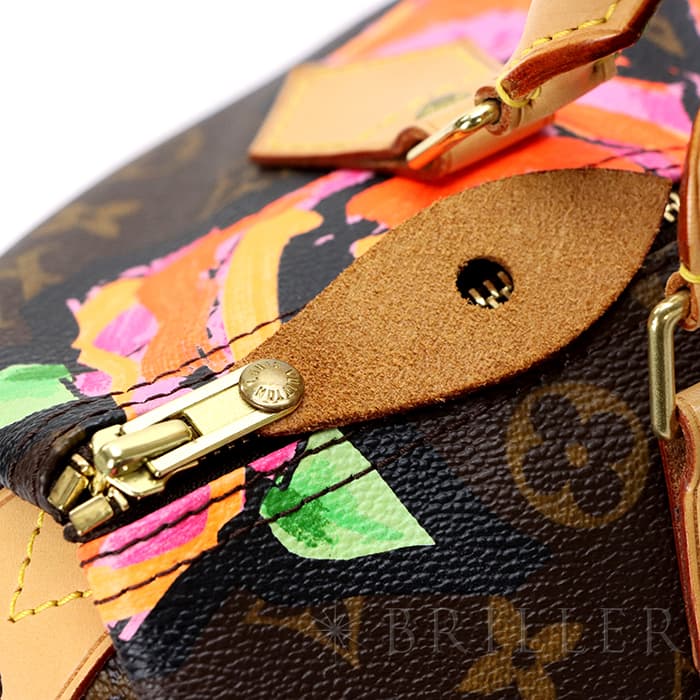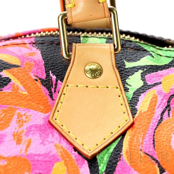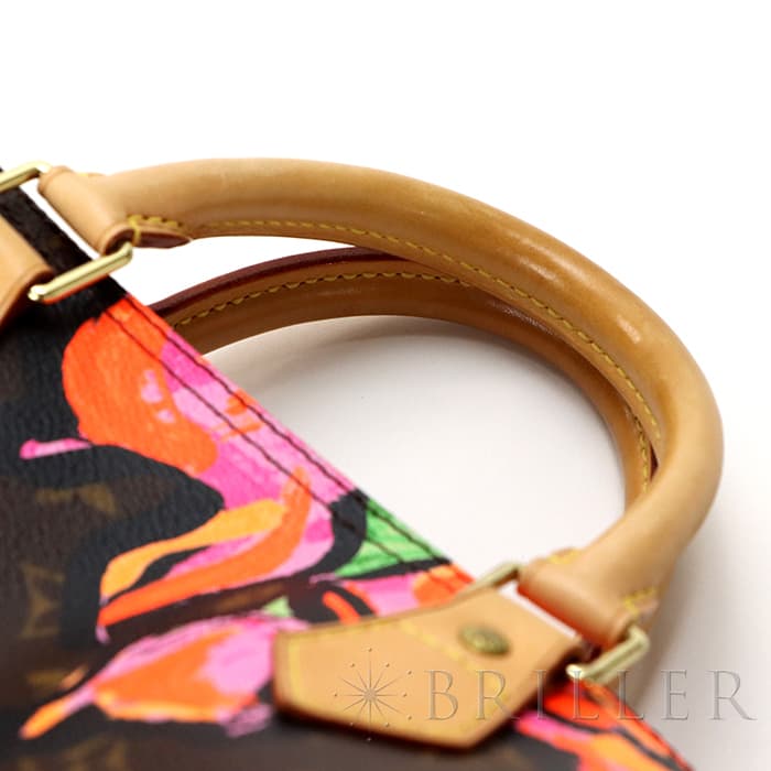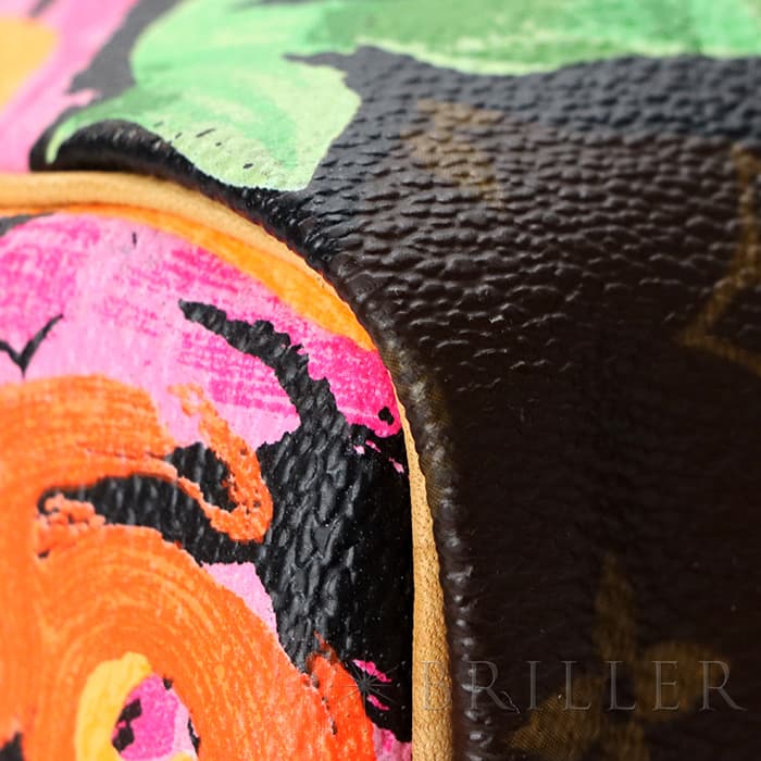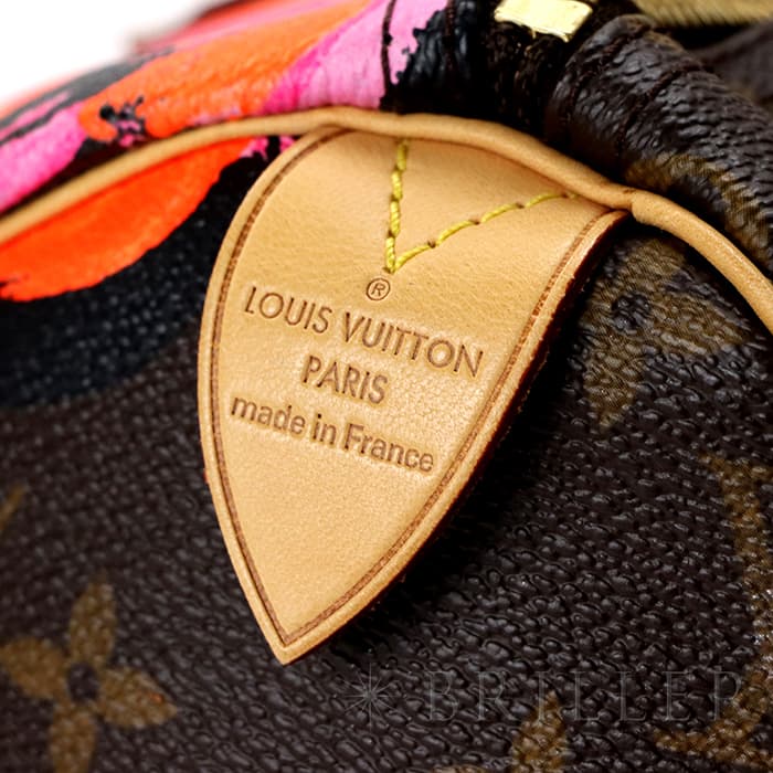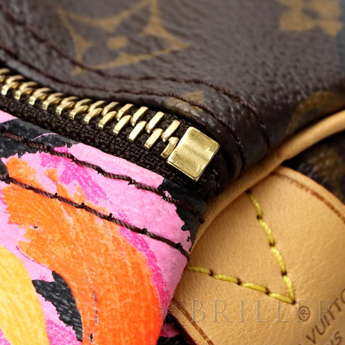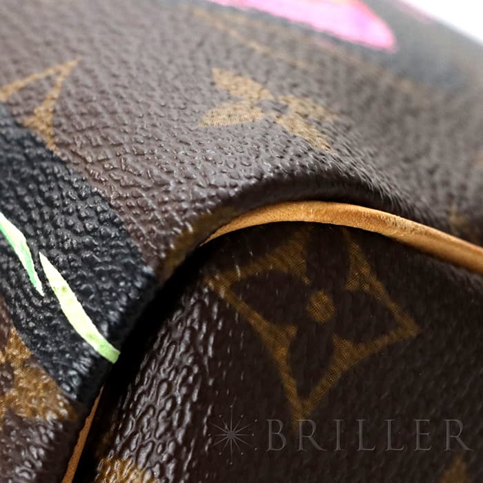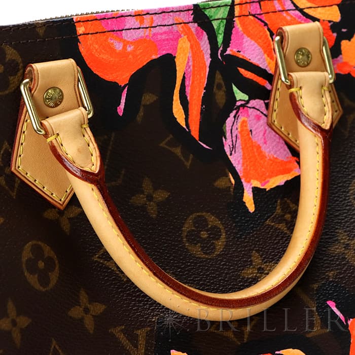 2009年にマークジェイコブスがデザイナーをつとめていた当時、グラフィティを発表したスティーブン スプラウスへのオマージュとしてデザインされた華やかな「ローズ」が、モノグラムにシルクスクリーンでプリントされた希少なスピーディーです。スピーディ30は圧倒的な収納力があるので、タウンユースから1泊2日程度の旅行にも幅広く活躍してくれます。ローズがアクセントに加わるため、シンプルなファッションに合わせて楽しみたいアイテムです。見た目とは裏腹にかなり軽量のため、普段使いがとてもしやすいバッグです。