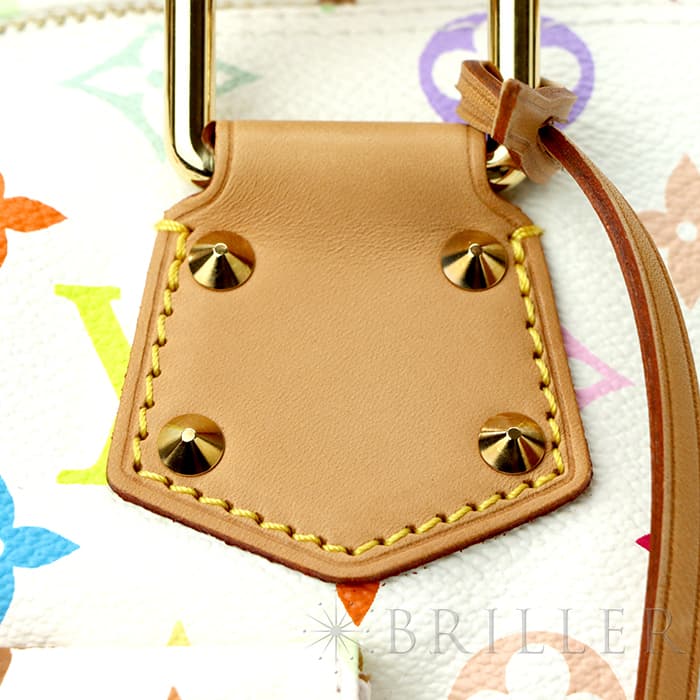 ニューヨーク出身のデザイナー「マーク・ジェコブス」氏と日本の現在美術アーティスト「村上 隆」氏のコラボレーションによって生まれた「マルチカラー」。鮮やかで絶妙な色合いを表現するため、合計33色のカラーで構成されています。豊かな色彩でありながら上品さを損ねないデザインで、アイコニックな「スピーディ」を華やかに彩ります。収納力のあるスピーディは都会的なスタイルにマッチするので、デイリーのお出かけに活躍してくれそうです。中古のコンディションのため、正面向かって左側に汚れ、ポケットに色移り、金具には小傷がありますが、全体的にはとても良好なコンディションです。