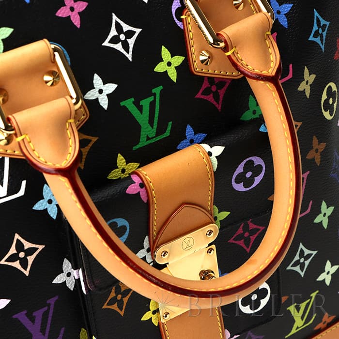 持ち手部分にスレや小さなシミ、底の角にわずかにこすれたような痕が見受けられますが、使用感があまり感じられず、LV ロゴの刻印を施したパドロックも付属している状態の良いお品物です。