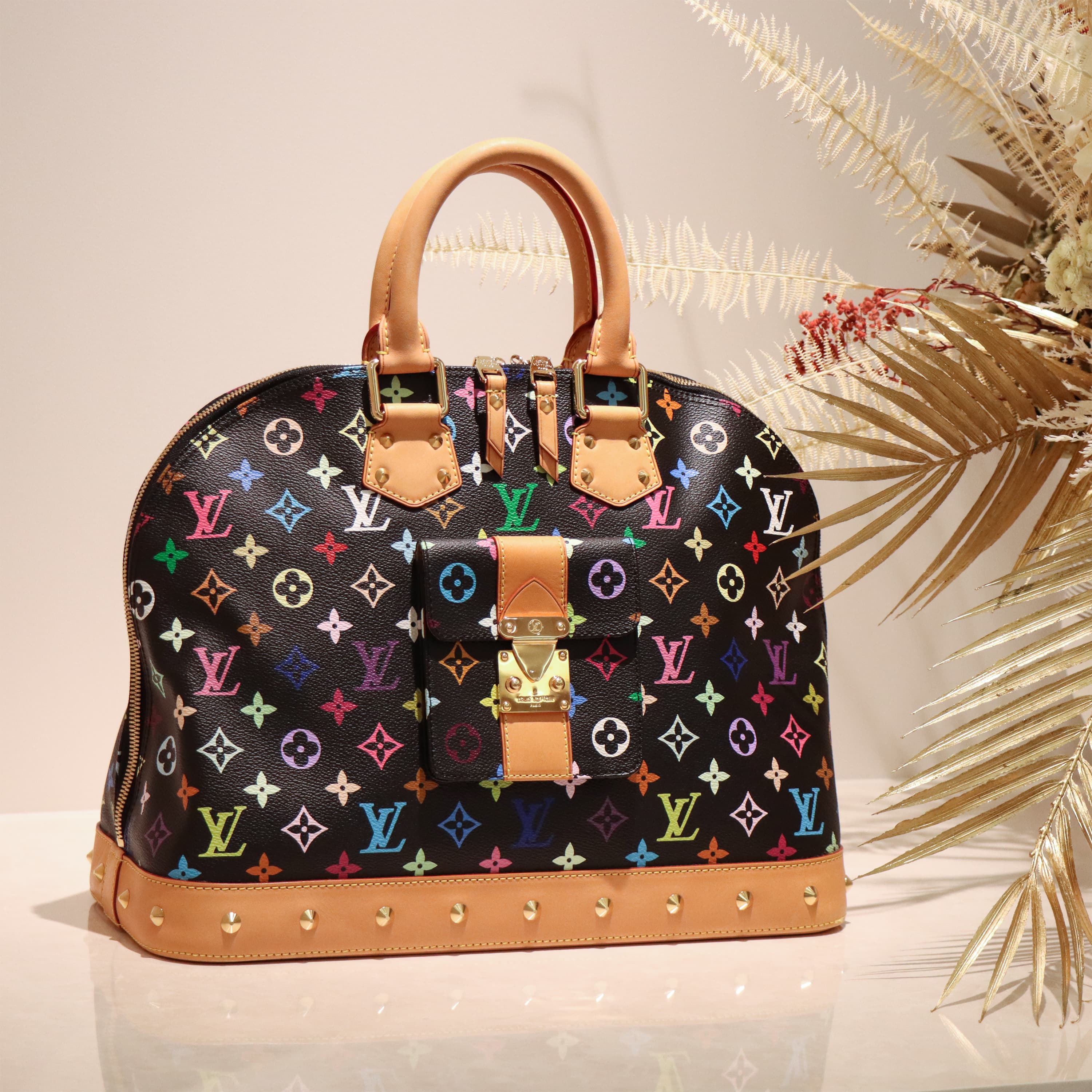 アルマは丸みを帯びた女性らしいフォルムが特徴のバッグです。 こちらのアイテムは、定番モノグラムに3色以上のカラーを配する、ルイ・ヴィトンのアクセサリーデザイン「マルチカラー」を採用しており、ブラックとのコントラストが華やかで、とても可愛らしいデザインです。一見、色合いが派手に感じるかもしれませんが、実際に手に取ってみるとその可愛さの虜になること間違いなし。ルイ・ヴィトンを象徴するスムースレザーのトリミング、ゴールド素材の金具やスタッズがあわさることで、より高級感のあるデザインになっています。気になる収納力ですが、日帰りや1泊程度の小旅行に必要なアイテムを持ち運ぶことが可能です。また、ダブルファスナー開閉式や、底に傷をつきにくくする底鋲など、日常遣いに配慮されたデザインは、普段使いをしたい方に大変おすすめです。