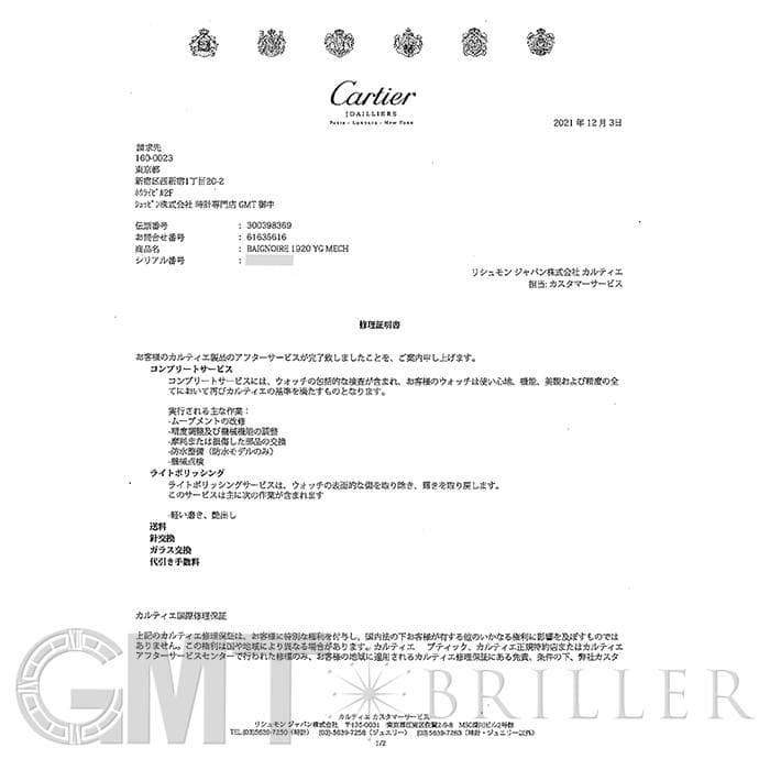 2021年12月カルティエにてコンプリートサービス・ガラス交換済み