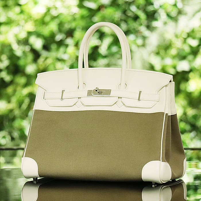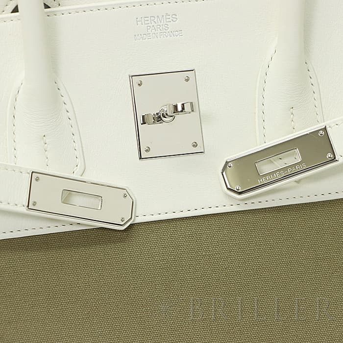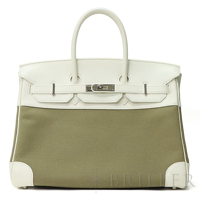 エルメス バーキン35 ヴォーガリバー×トワル ホワイト×カーキ シルバー金具 HERMES BIRKIN35
