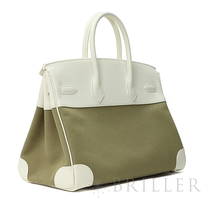 HERMES エルメス バーキン 35 ヴォーガリバー×トワル ホワイト×カーキ シルバー金具