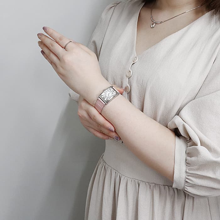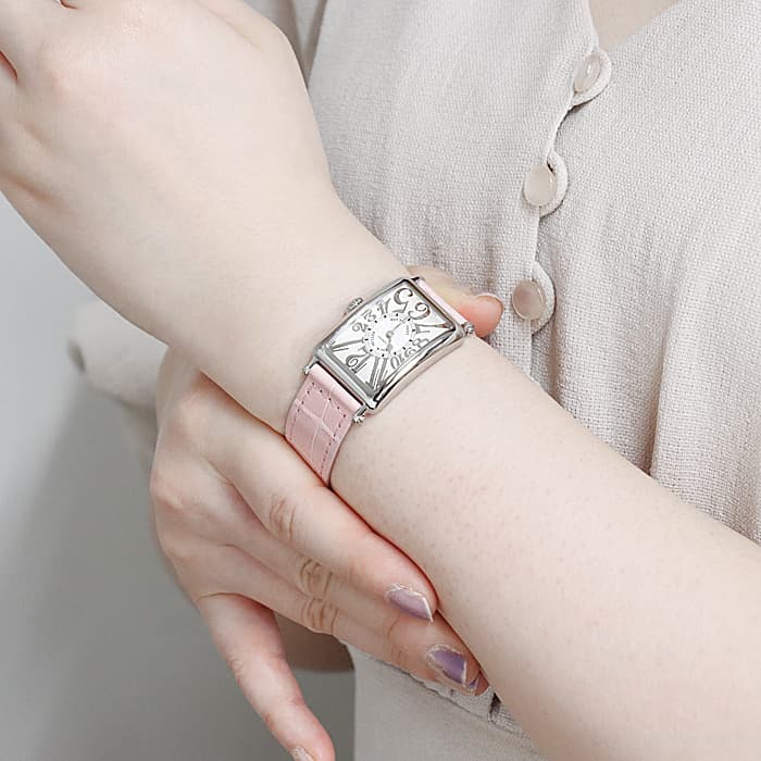 トノーカーベックスと並んで愛される、ロングアイランドは1920年代から1930年代にかけて流行したノヴェチェントスタイルを現代的なアールデコにアレンジしたコレクション。腕に沿うように婉曲したレクタンギュラーケースに、美しいビザン数字を配置した優雅なスタイルが特徴です。シンプルなステンレスケースとシルバー文字盤に、華やかなピンクレザーを合わせました。おしゃれにエッセンスを与える腕時計です。