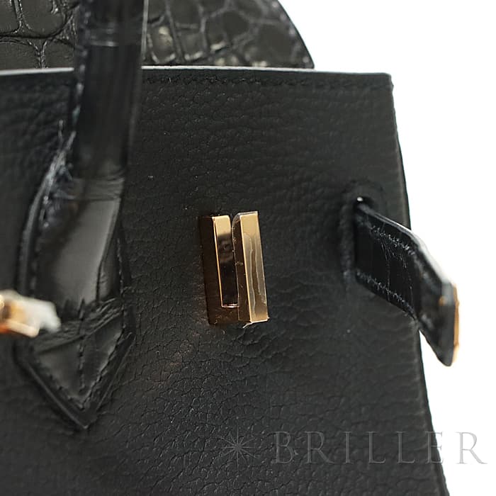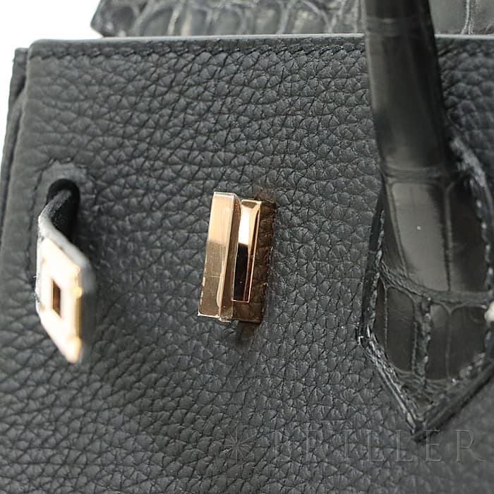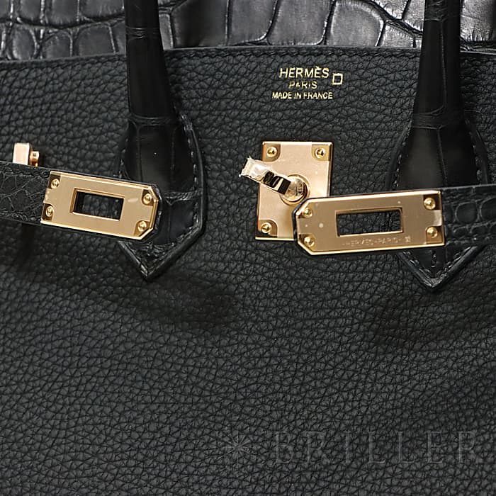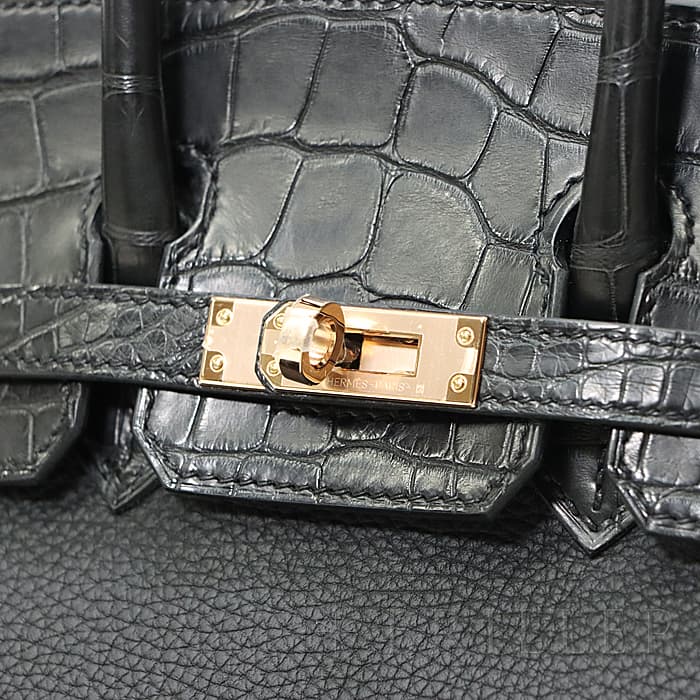 HERMES エルメス バーキン タッチ 25 トゴ クロコダイル アリゲーターマット ブラック ローズゴールド金具