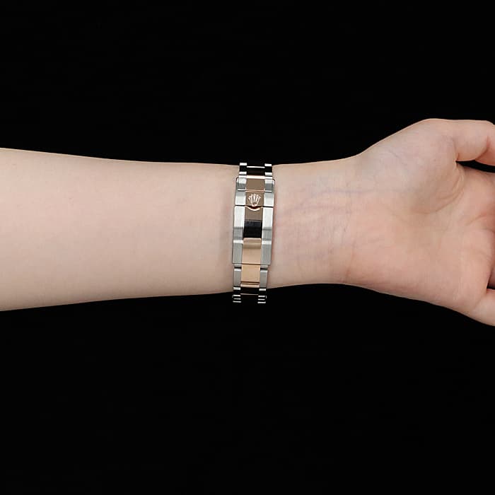 ステンレススチール素材とのエレガントな雰囲気のロレゾールコンビ仕様モデル。