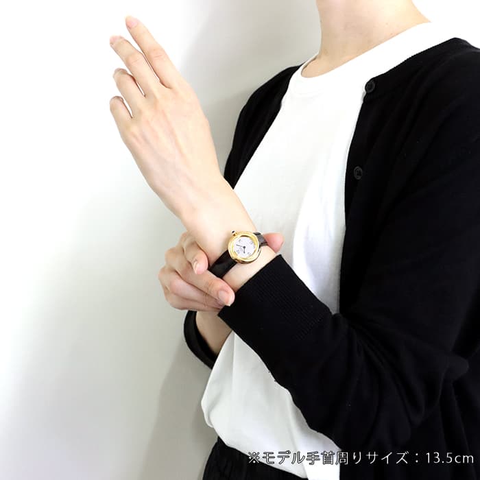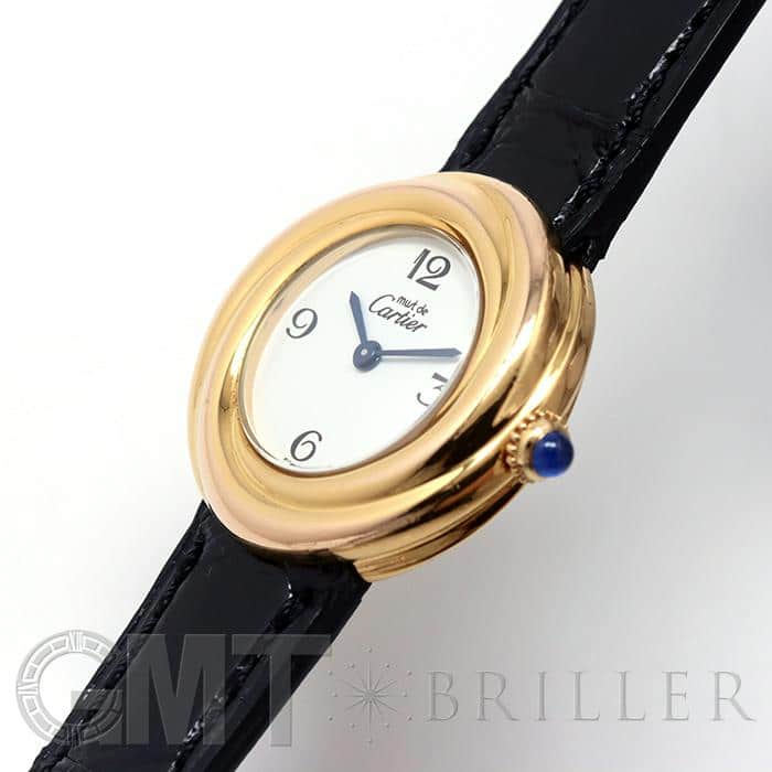 三連リングのデザインが特徴的なカルティエのジュエリーコレクション「トリニティ ドゥ カルティエ」。現在はリングやネックレスのみの生産となっておりますが、以前は時計も生産されておりました。スターリングシルバーに純金を貼り付けた素材「ヴェルメイユ」は、金メッキよりも厚くコーティングされたイエローゴールドが、限りなく純金に近い美しい輝きを放ちます。アンティークウォッチのようなデザインも可愛らしく、カルティエらしいラグジュアリーな腕時計を比較的お手頃な価格で楽しめる1本です。