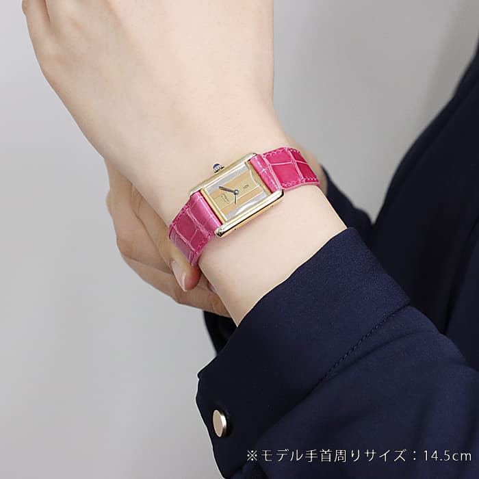 タンクという名前は「戦車」よりインスピレーションを得て名付けられ、第一次世界大戦の戦禍より、永遠の世界平和という願いを込めたコレクションです。 マストタンクには「ヴェルメイユ」というシリーズがあり、シルバーの上から純金を厚く貼る加工技術の名前が由来となっています。 金を液体にしてからシルバーのケースに塗り固めるため、安価ながらも手間やコストがかかっており高級感のある仕上がりです。 縦に並んだトリニティカラーがカルティエならではの配色であり、クォーツではなく手巻きムーブメントを搭載しているなど、一味違ったモデルになっています。