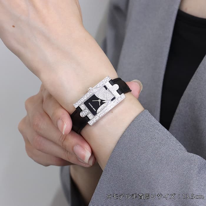 「キング・オブ・ダイヤモンド」と称されるハリー・ウィンストンを代表するタイムピース「アヴェニュー」。夜をイメージして作られた「アベニュー ナイト 310/LQWL.ADB/ D3.1B」は、夜空をイメージさせるブラックの文字盤に、ダイヤモンドで描かれた蝶のモチーフが輝きます。ベゼルにも贅沢にダイヤモンドが散りばめられており、ブラック文字盤のシックな印象を残しつつ、華やかに腕元を飾ります。文字盤に合わせたブラックのレザーベルトを備え、ダイヤモンドの輝きが際立つ1本となっています。