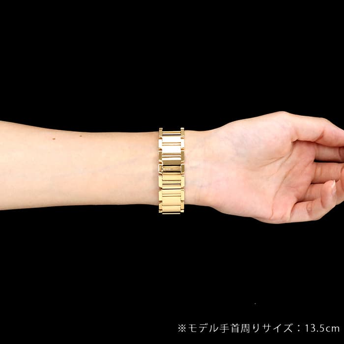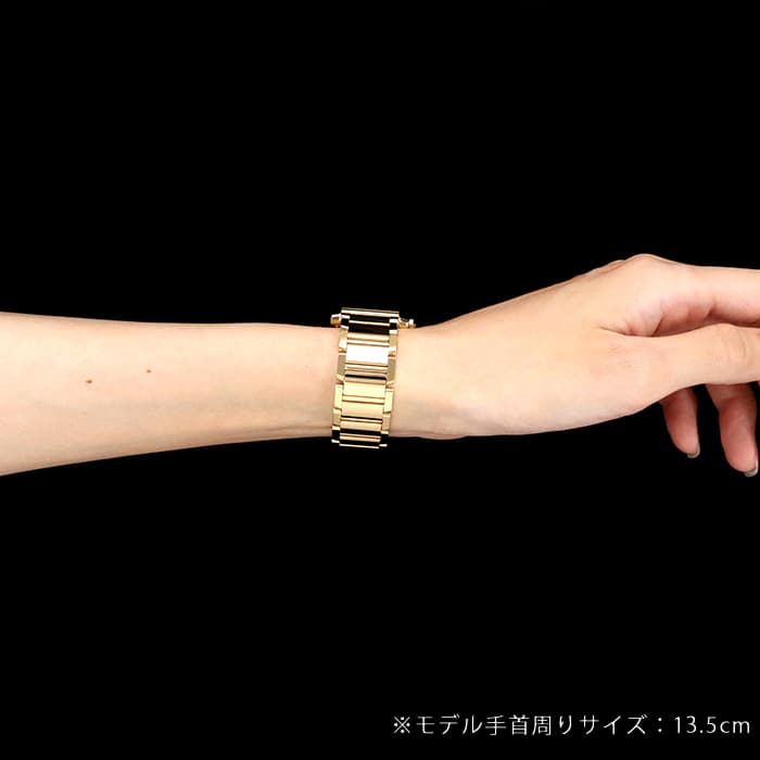女性らしさを表現した気品溢れるデザインは世界中から愛され続けるステータスウォッチです。カルティエのレディースウォッチの定番であるタンクフランセーズですが、こちらのモデルのようにケース・ブレスレット共にイエローゴールドのものは意外に数が少ない傾向がございます。MMサイズと少し大きめのサイズ感ですが、イエローゴールドを使用したことで肌なじみが良く、腕元にすっきりと収まりながらも華やかな印象を与えます。クォーツ式はメンテナンスが簡単ですので、初めてのブランド腕時計にもおすすめです。