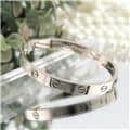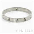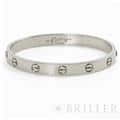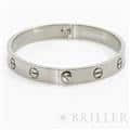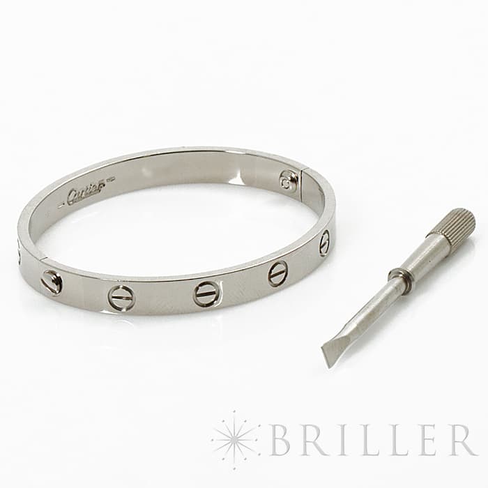 カルティエ ラブブレスレット ホワイトゴールド B6067616 CARTIER 世界5大ジュエラーのひとつである「カルティエ」。1970年代にニューヨークで生まれたLOVE シリーズは、カルティエを代表するコレクションの一つで、デザインの特徴でもあるビスを実際にドライバーで回して着脱を行うユニークな仕様。一人ではつけ外しができないことから「愛の絆」を表現しています。シンプルなバングル形状ですので、ほかのジュエリーとの重ね付けにも違和感なくお使いいただけます。 2022年9月 カルティエにて修復・磨き済み 全体に傷が残っておりますが、形状を保つためあえて強い磨きは行っておりません。 ご着用時に気になるものではございません。