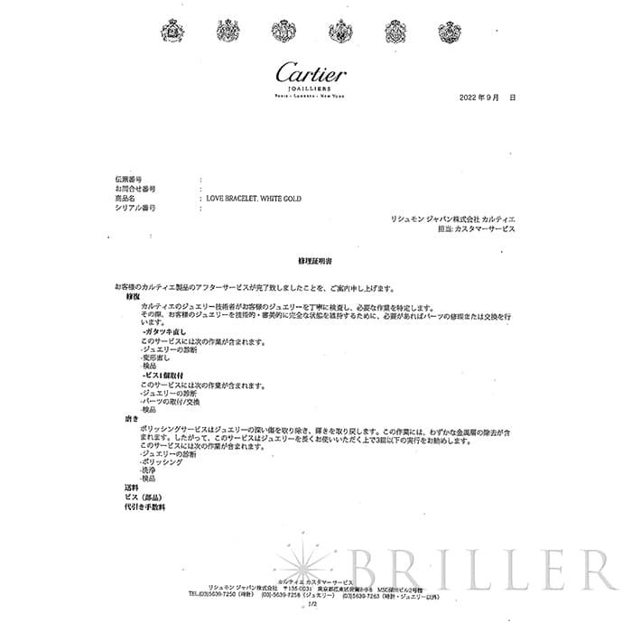 2022年9月 カルティエにて修復・磨き済み