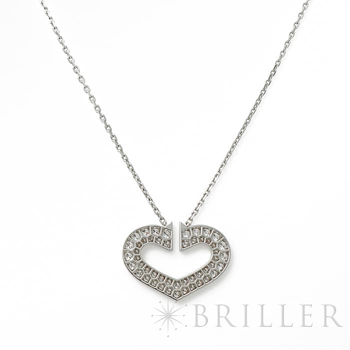 フランスで誕生し世界五大ジュエラーの一角である「カルティエ」。独創的なデザインや技術力の高さから圧倒的な支持を受けるブランドです。カルティエの頭文字「C」の形をハート形に変形させた「Cハート」シリーズは人気が高く、中でもこちらのモデルは贅沢にダイヤモンドをセッティングした高級感溢れるネックレスです。
