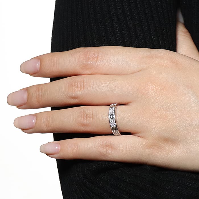 フランスで誕生し世界五大ジュエラーの一角である「カルティエ」。独創的なデザインや技術力の高さから圧倒的な支持を受けるブランドです。「LOVE」シリーズは人気が高くビスモチーフがデザインされているのが特徴。ラブリング スモールモデルは通常のラブリングに比べ細く、スッキリとした印象を与えます。ホワイトゴールド素材にダイヤが散りばめられており、より高級感を感じられる華やかなデザインとなっています。