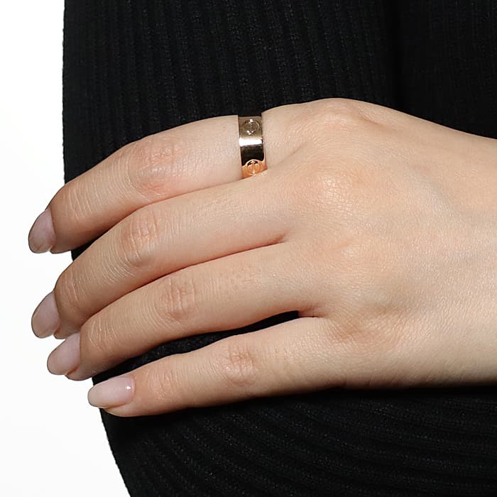 世界5大ジュエラーとして世界中から愛されるブランド「カルティエ」。カルティエが手掛ける「束縛」や「愛の絆」をテーマにして作られた「ラブコレクション」は、老若男女問わず不動の人気を博しています。その中でも、「愛を閉じ込める」という意味のビスマークが刻印された「ラブリング」は、ペアリングとして購入される方も非常に多い人気ラインです。上品で華やかなピンクゴールドを用いたこちらは、派手過ぎずにお手元を飾る洗練されたリングです。