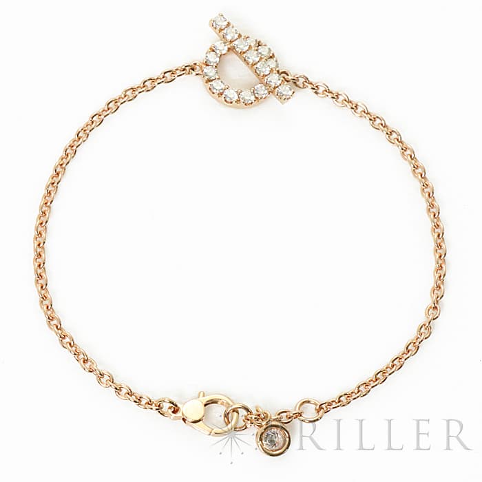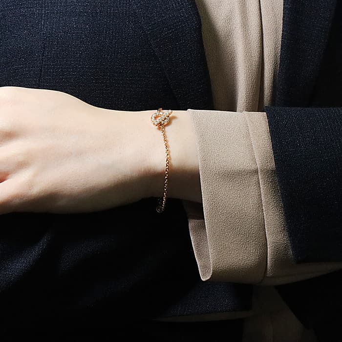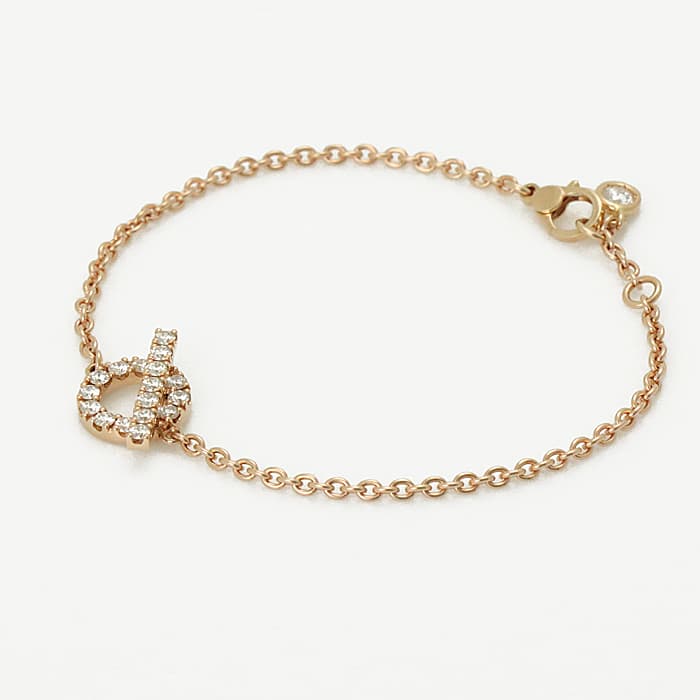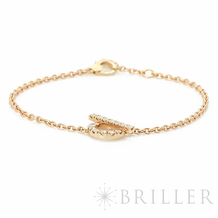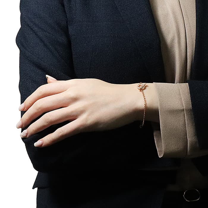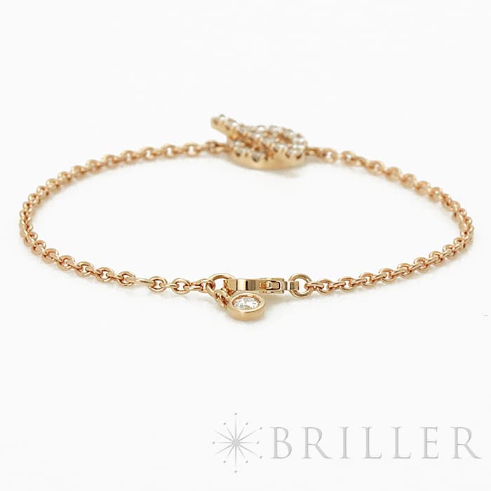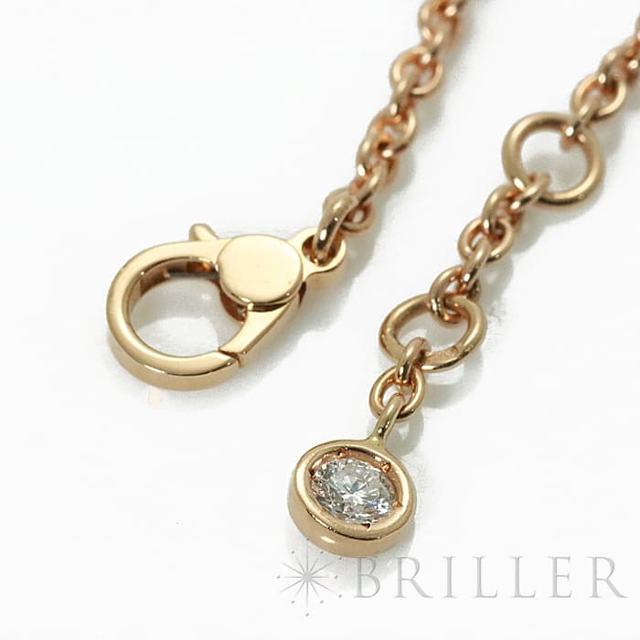 船のいかりをモチーフにしてデザインされたフィネスコレクション。ピンクゴールドのチェーンはしっかりと存在感があり、手元に目を惹く洗練された雰囲気が特徴的です。アジャスターがあり、長さは14-15cmでご使用いただけます。留め金の部分にもダイヤモンドがさりげなくセッティングされ、どこから見ても美しいブレスレットに仕上がっています。