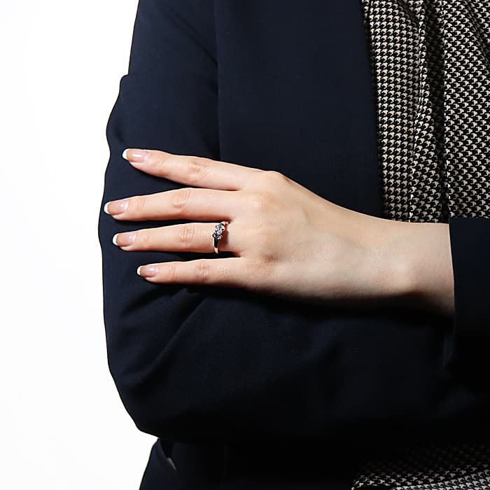 バレエからインスピレーションを得た、カルティエの代表的コレクション「バレリーナ」。中央に贅沢にセッティングされたダイヤモンドが存在感をアピールするこちらのモデルは、素材にプラチナを使用し上品な指輪です。世界五大ジュエラーらしい圧倒的な輝きを放ち指元を華やかにします。