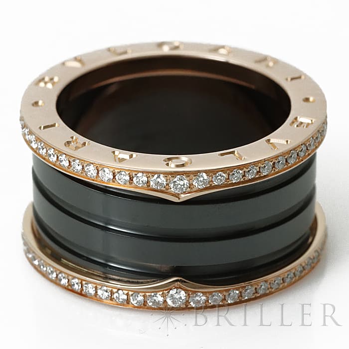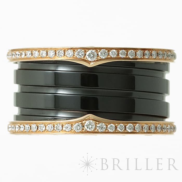 ブルガリ ビーゼロワン リング 349936 ピンクゴールド セラミック ダイヤモンド BVLGARI 14号