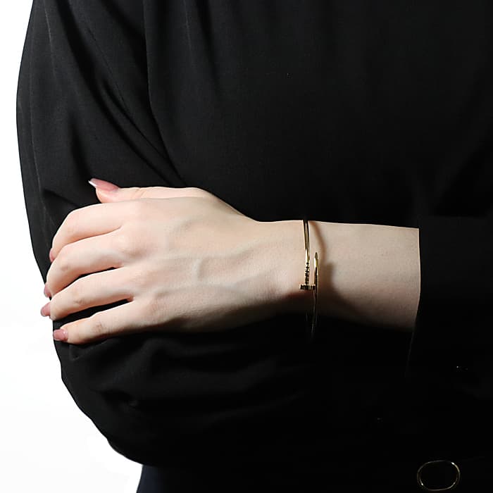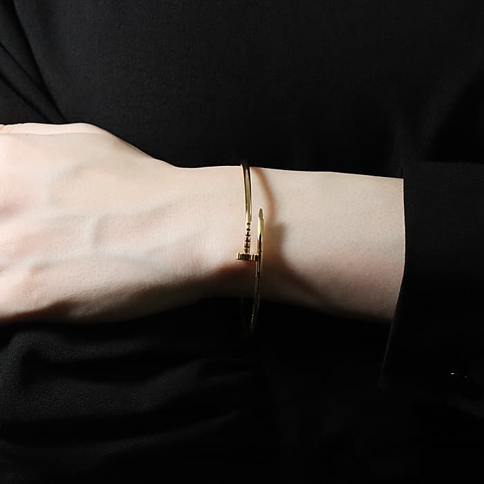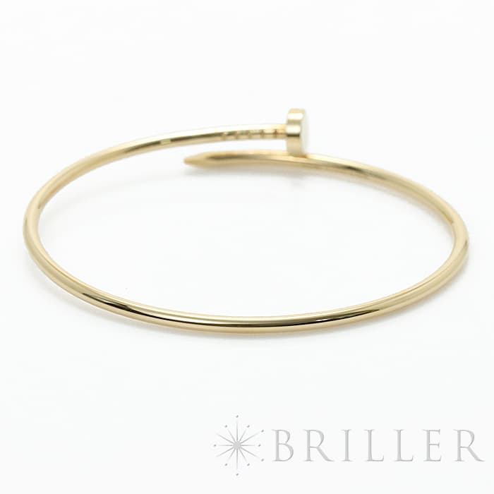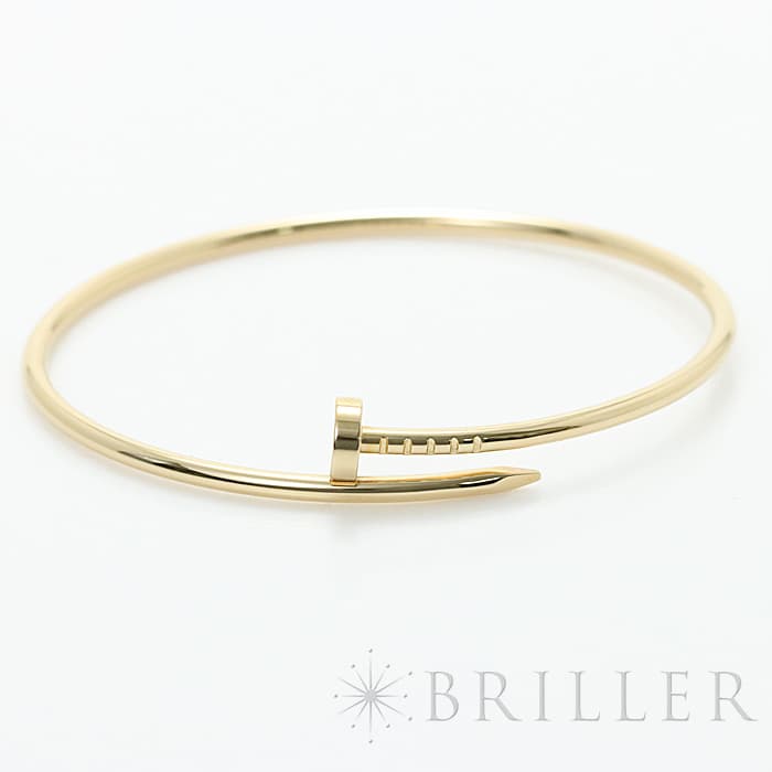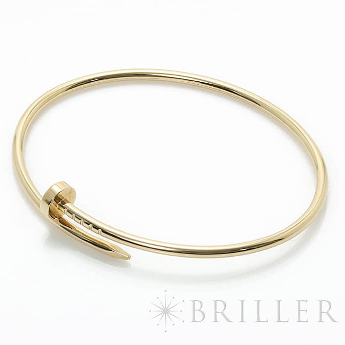 フランスで誕生し、独創的なデザインや技術力の高さから圧倒的な支持を受けるブランド「カルティエ」。1本の釘から誕生したジュエリー「ジュスト アンクル」が入荷いたしました。大胆かつモダンなデザインをしたイエローゴールドのブレスレットは主張がありながらも美しさを兼ね揃えています。尚、こちらはスモールサイズとなります。