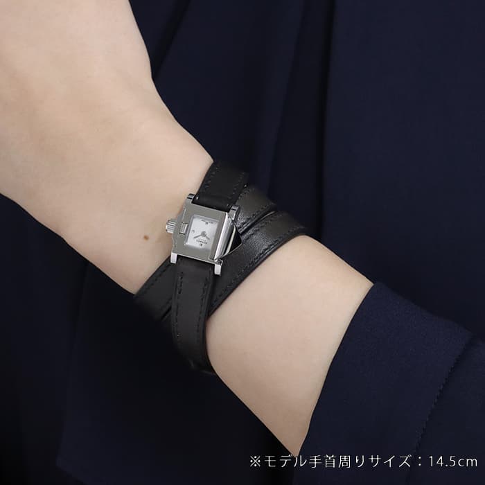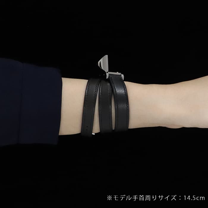 ピラミッド型のスタッズが特徴の「メドールロック」が3重巻きのストラップ、スタッズ にラッカーを採用しアップデート。リューズを押すことで蓋が開き、時刻を確認することができます。ハードな印象が強いスタッズですが、エルメスの上質なレザーと組み合わさることで、大人の女性もお洒落に取り入れやすいルックスに。フラップを開けたバーキンと合わせて、カジュアルな甘辛ミックスコーデとしても楽しめそうです。ファッションのコーディネートの幅が広がりそうなアイテムです。