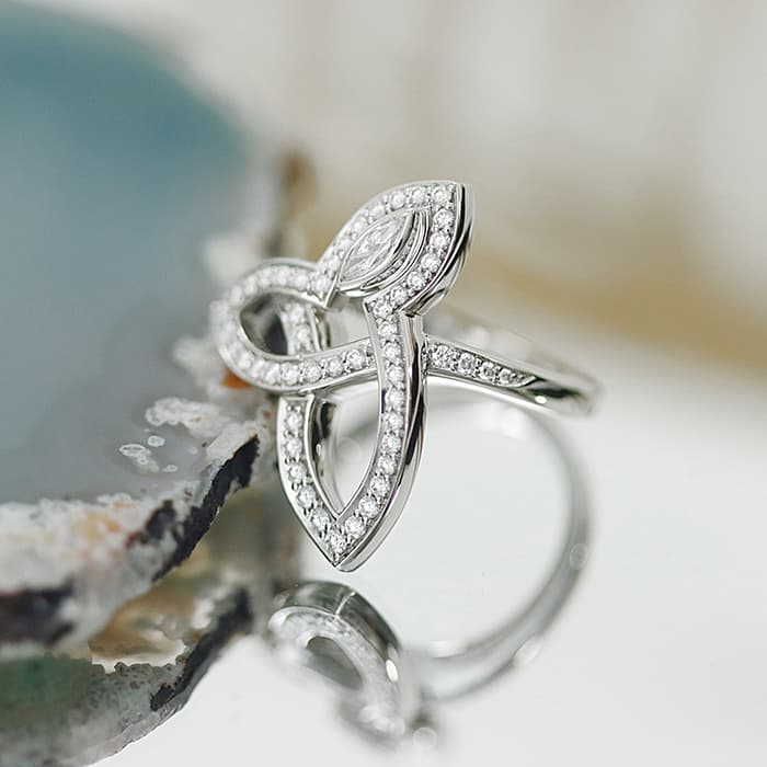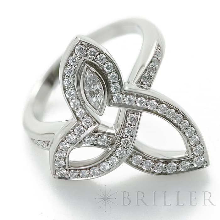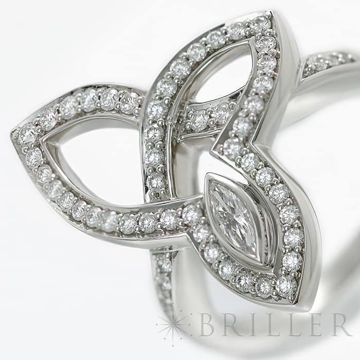 世界五大ジュエラーの一つであり「キング・オブ・ダイヤモンド」とも称されるハリーウィンストン。「リリークラスター」はユリの花の自然な美しさにインスピレーションを受け誕生しました。こちらは重厚感あるプラチナ素材を使用したリングで、贅沢にも90個のラウンドとマーキースカット・ダイヤモンドがセッティングされた、ハリーウィンストンらしい高級感溢れるデザインです。