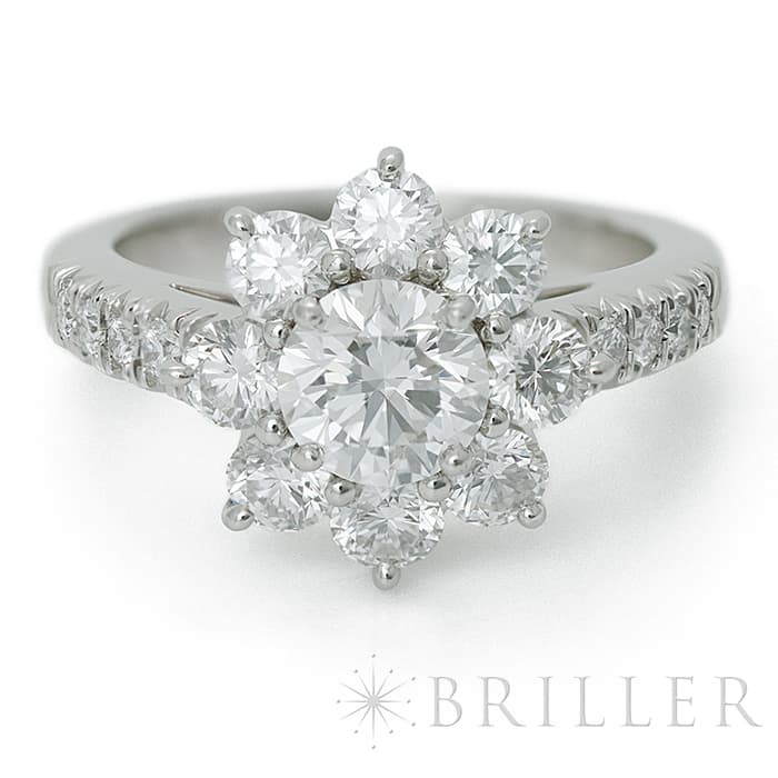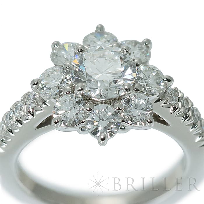 世界五大ジュエラーの一つであり「キング・オブ・ダイヤモンド」とも称されるハリーウィンストン。 向日葵をモチーフにした「サンフラワー」コレクションは、センターストーンの周りを8石のダイヤモンドが光輪のように彩ります。 中央のダイヤモンドは0.74ctの大粒のものがセッティングされ、極めて贅沢なリングとなっております。 一生モノとして年齢やシーンを問わずご愛用いただけるお勧めのモデルです。