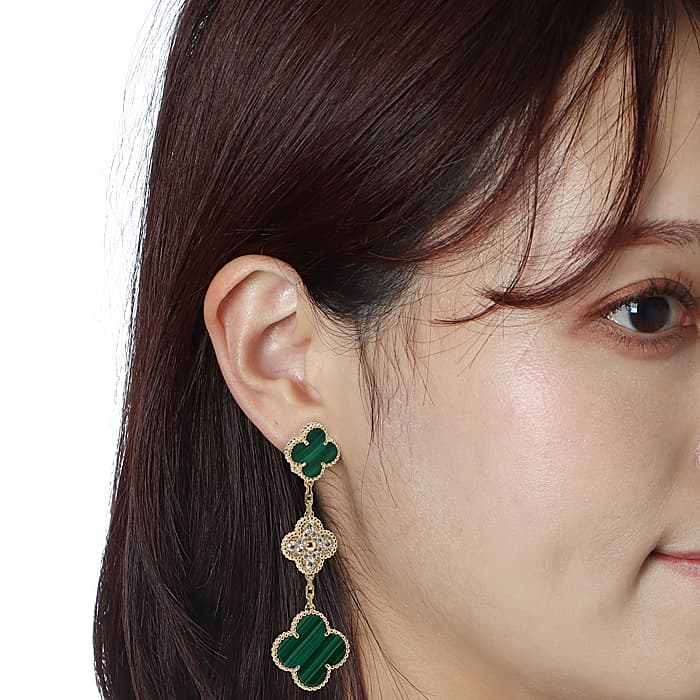 Van Cleef & Arpels ヴァン クリーフ&アーペル マジックアルハンブラ イヤリング 3モチーフ マラカイト VCARO9II00