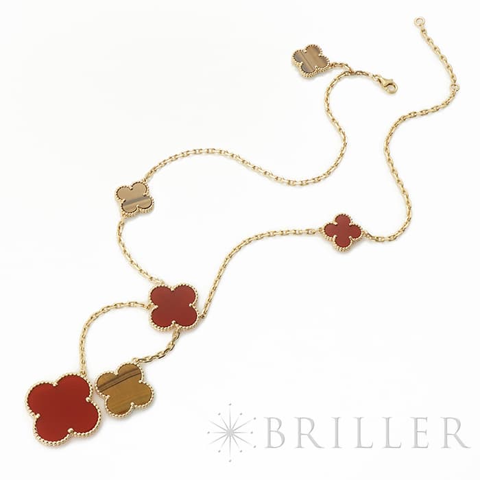 Van Cleef & Arpels ヴァン クリーフ&アーペル アルハンブラ マジック アルハンブラ ネックレス 6モチーフ イエローゴールド カーネリアン タイガーズアイ VCARN5JP00