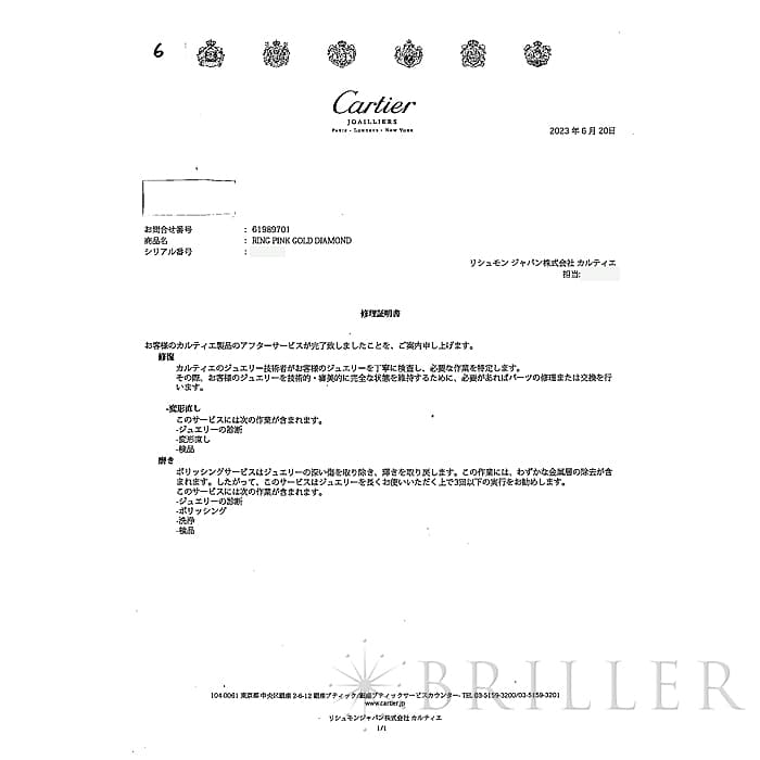 2023年6月 カルティエにて変形直し・ポリッシング済み