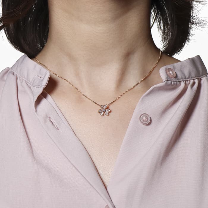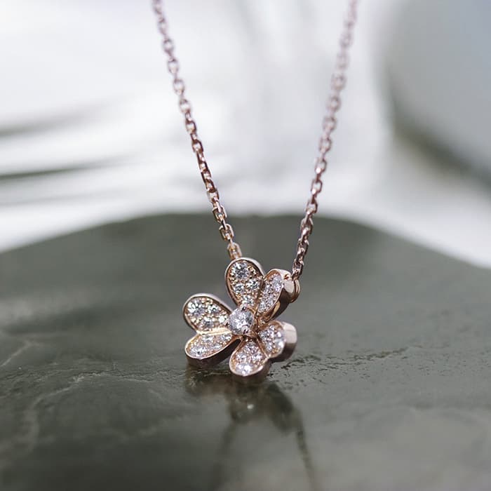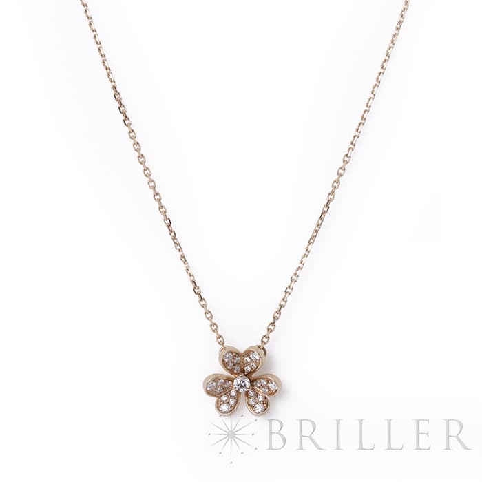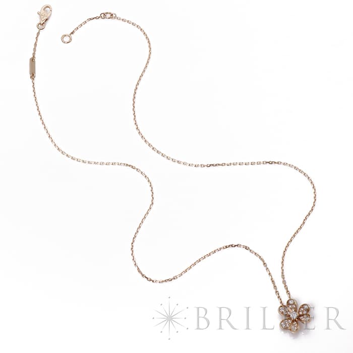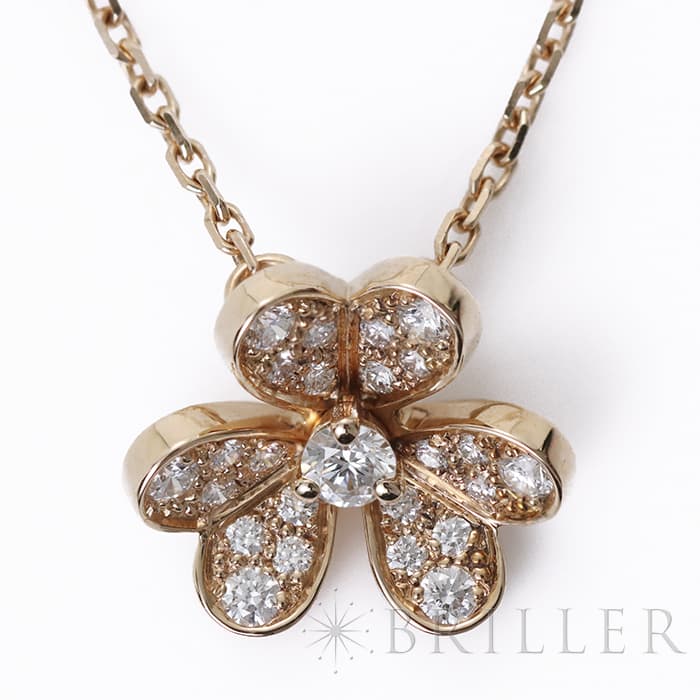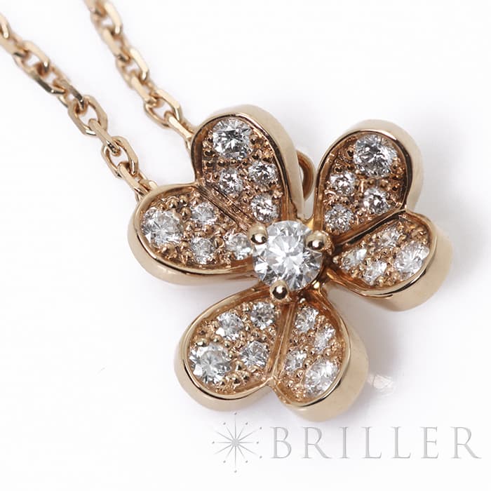 フランスに本店のあるハイジュエラー「ヴァンクリーフ&アーペル」。1906年に誕生し、数多くのセレブリティから愛されているブランドです。代表コレクションの一つ「フリヴォル」は立体的な花のモチーフが愛らしいコレクションで、肌なじみの良いピンクゴールドにダイヤモンドをふんだんにあしらったこちらのペンダントは、可憐で上品なジュエリーです。