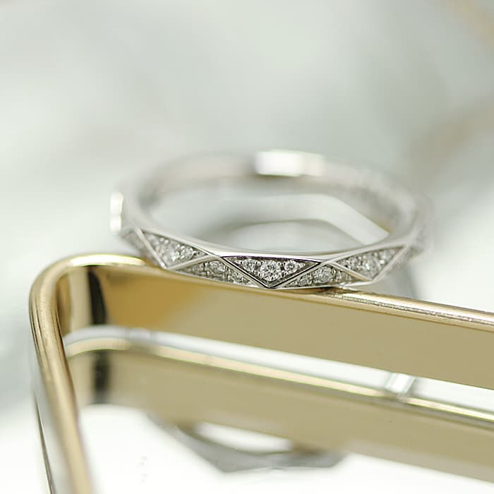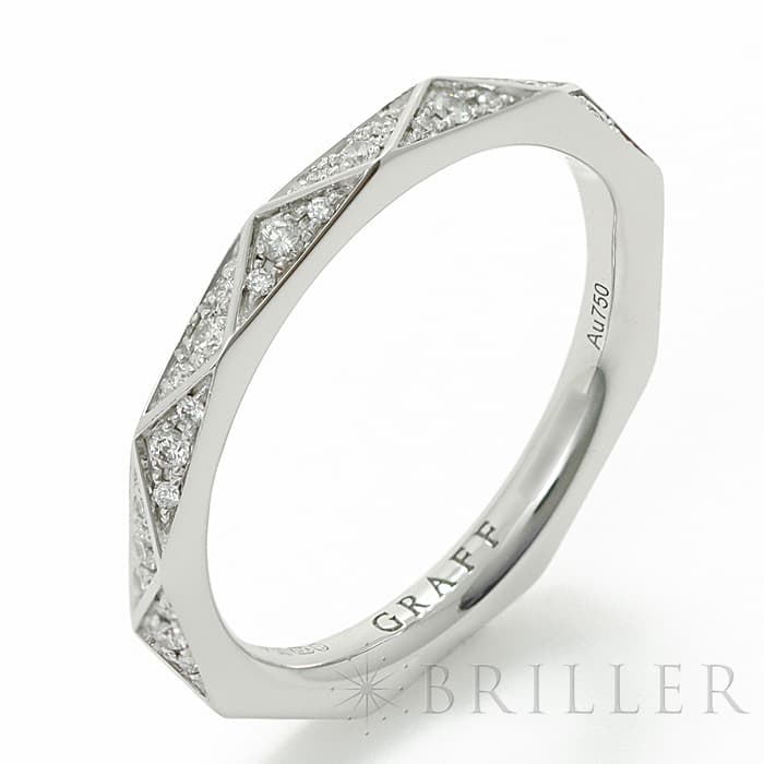 ダイヤモンドのクオリティにおいてトップレベルと評されるイギリスのジュエラー「GRAFF(グラフ)」。ダイヤモンドのファセットにインスピレーションを受けて誕生した「ローレンス グラフ シグネチャー ダイヤモンド バンド」は、グラフを象徴するモダンなコレクションです。ホワイトゴールドにパヴェダイヤモンドをセッティングしたこちらのリングはエレガントにお手元を彩ります。