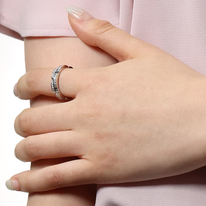フランスで誕生し世界五大ジュエラーの一角である「カルティエ」。時計やジュエリーなど幅広く展開され、メゾンを象徴する動物「パンテール(豹)」の名を冠したマイヨンパンテールリングは、ツイストしたラインで豹のしなやかな身体を表現したコレクションです。ホワイトゴールド素材にダイヤモンドがセッティングされたこちらのリングは。上品かつ華やかにお手元を彩ります。