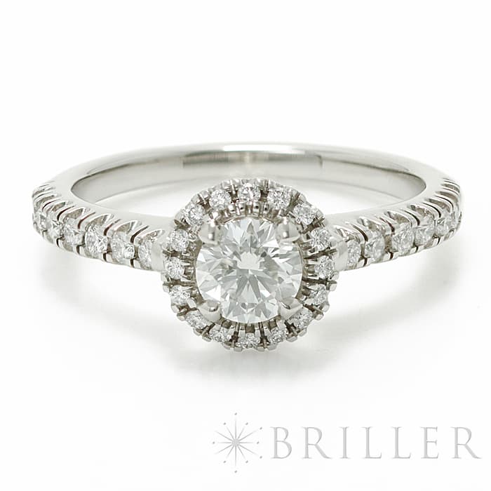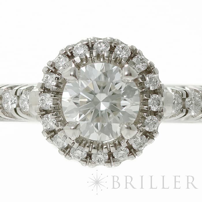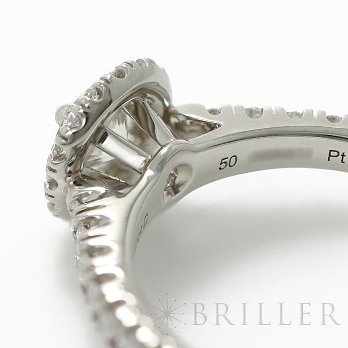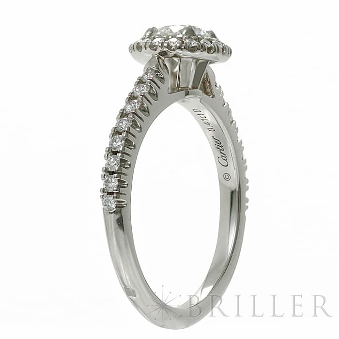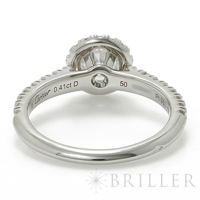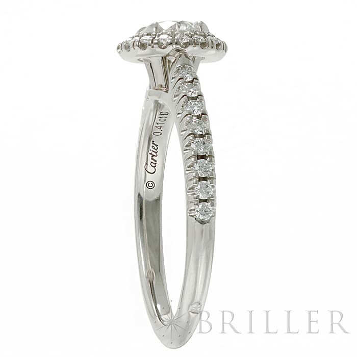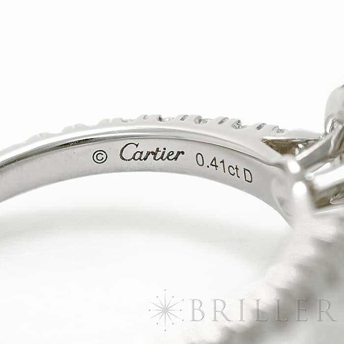 中央の大粒ダイヤは0.41ctにも及び、カルティエの高品質なダイヤモンドを存分にお楽しみいただけます。周囲のパヴェダイヤのセッティングもたいへん美しく、存在感のあるラグジュアリーなリングです。