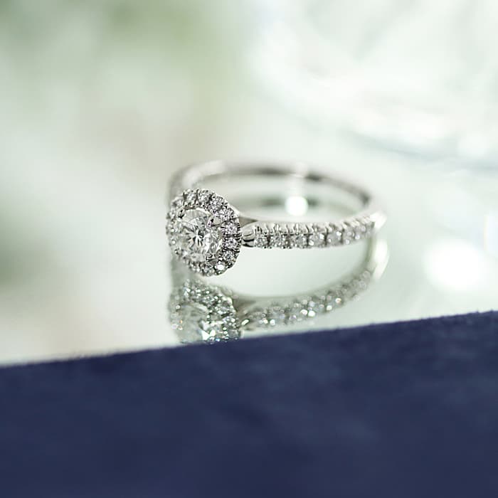 ブリリアントカットダイヤモンドを光輪状にあしらった、カルティエの「デスティネ」コレクション。「ソリテール」は、中央に宝石がセッティングされていることを意味しています。