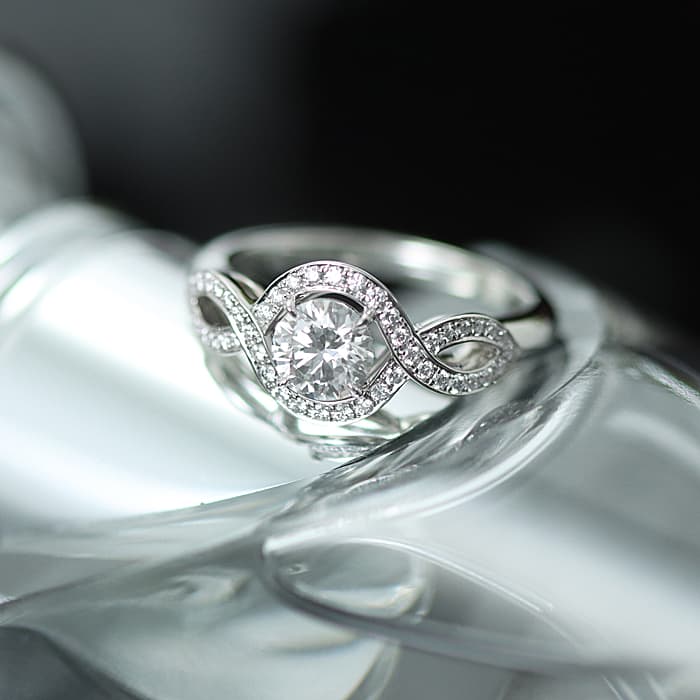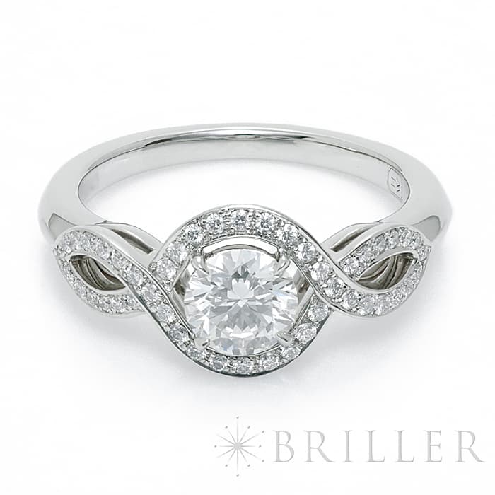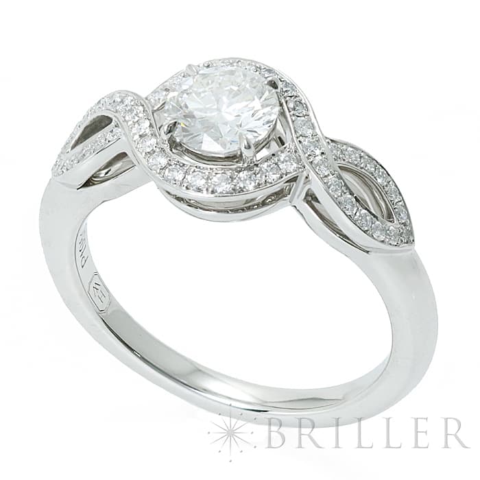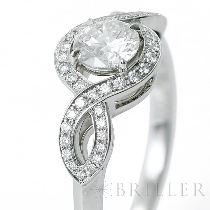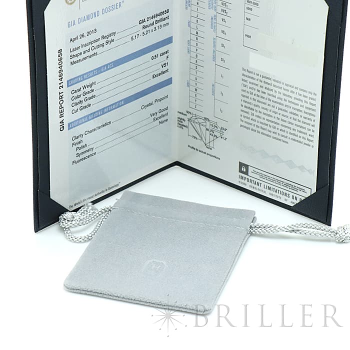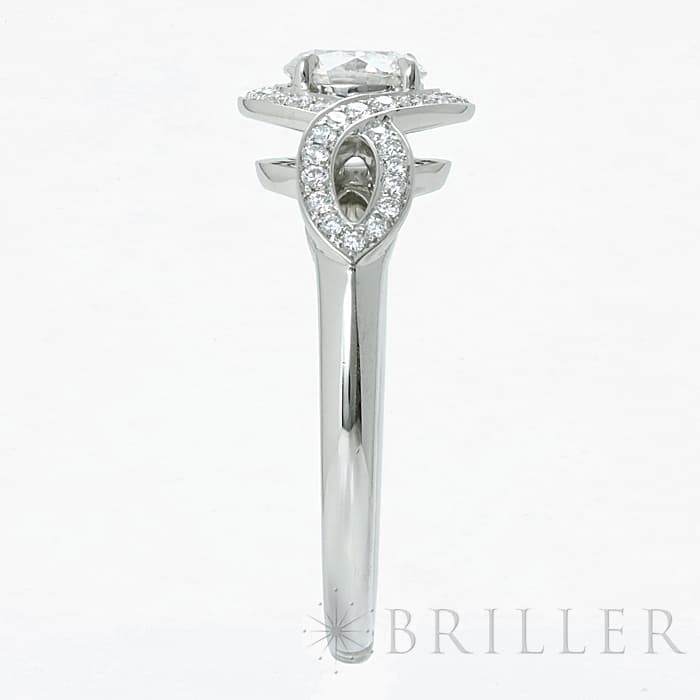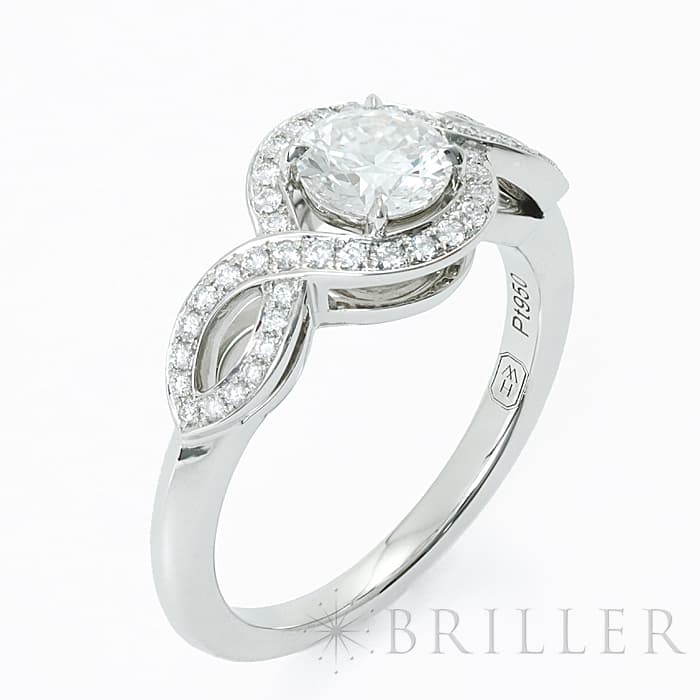 中心には0.51ctの大粒ダイヤモンドがセッティングされており、カラーF・クラリティVS1・カットExcellentというハリーウィンストンらしい高い品質をお楽しみいただけます。