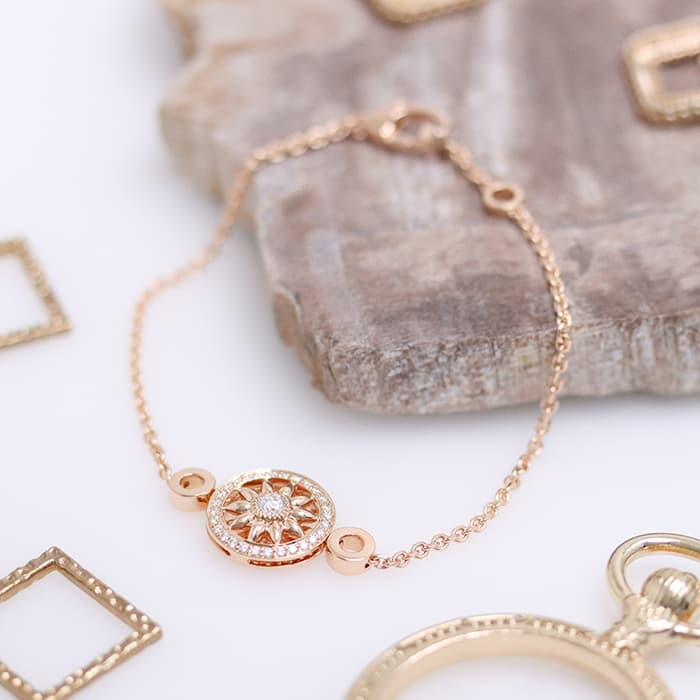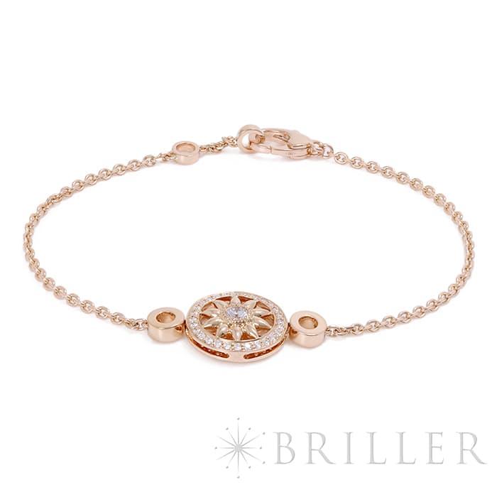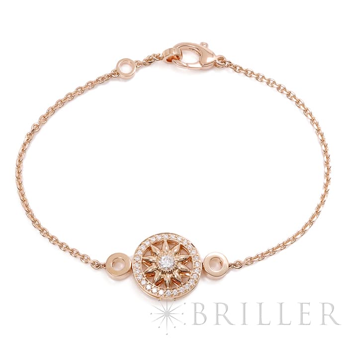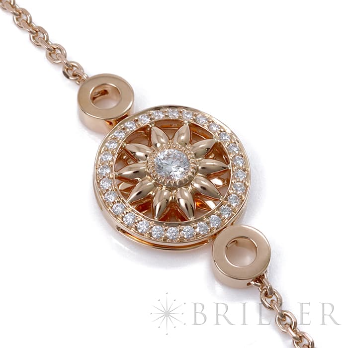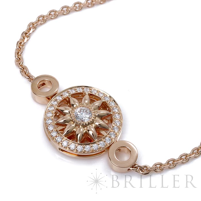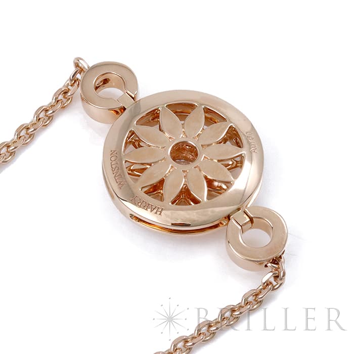 世界五大ジュエラーの一つであり「キング・オブ・ダイヤモンド」とも称されるハリーウィンストン。10枚の花びらが象徴的なロゼットモチーフ「ウィンストン・ゲート」コレクション。ローズゴールド素材の花びら中央には大粒のラウンド・ダイヤモンドが輝きを放ち、周りには29個のラウンド・ダイヤモンドがセッティングされています。