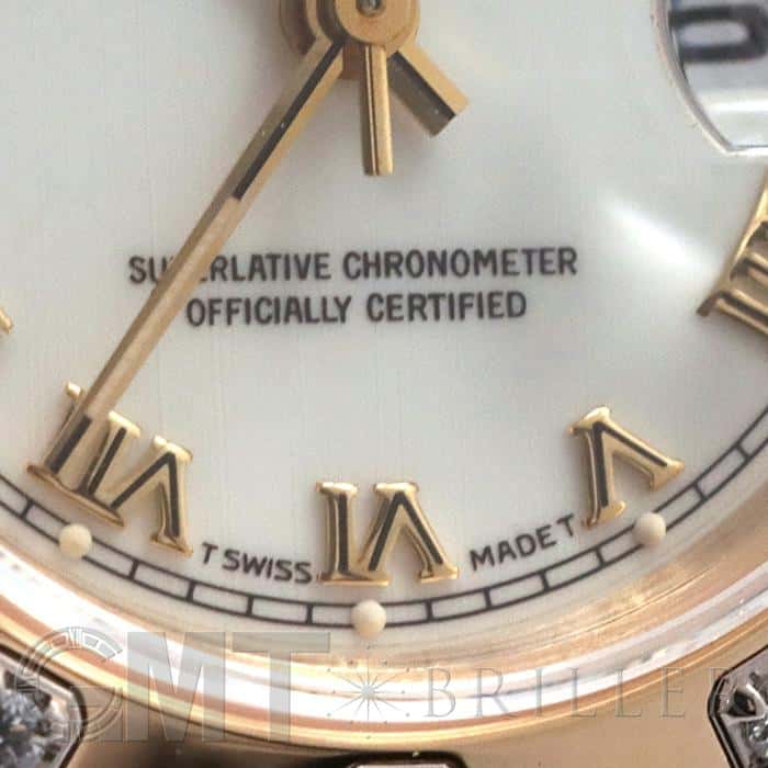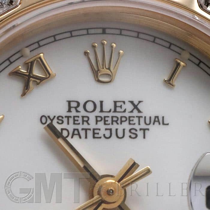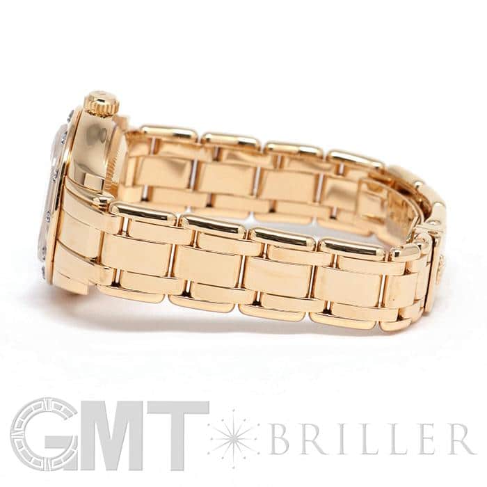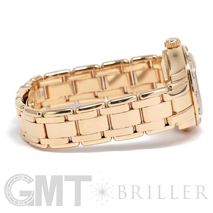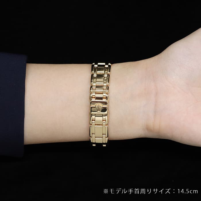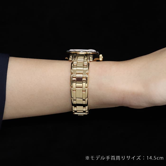 こちらはイエローゴールドのケースに、ベゼルには12ポイントのダイヤモンドがセットされていて、女性の美しさを最大限に引き立たせます。