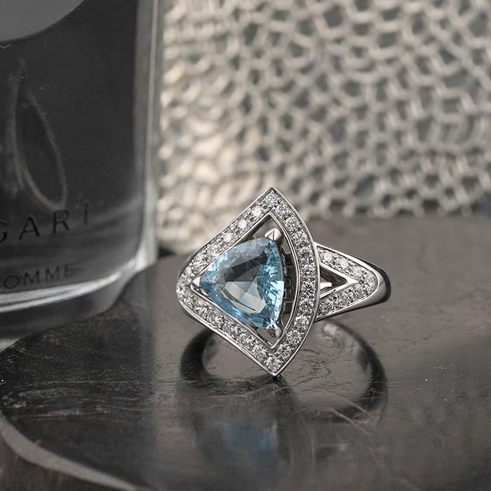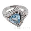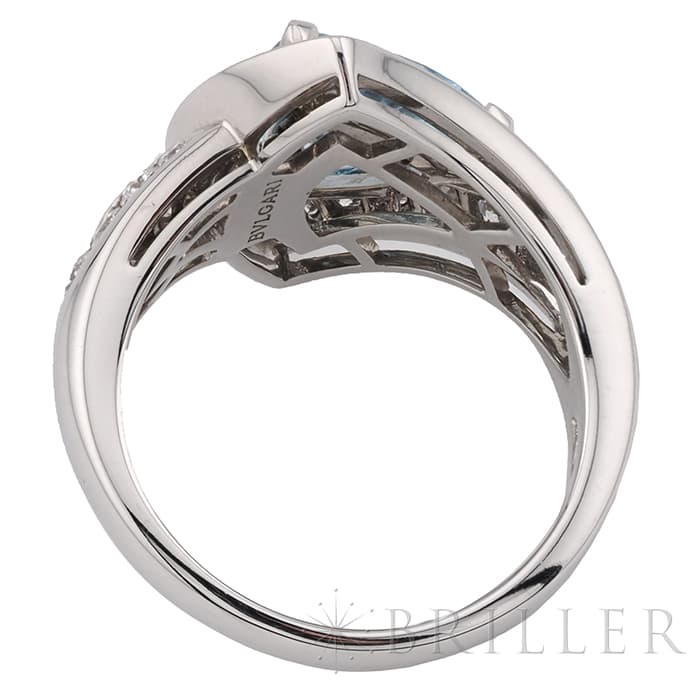 ブルガリ ディーバドリーム オープンワーク リング ホワイトゴールド アクアマリン ダイヤモンド 354062 14号 ダイヤモンドとカラーストーンで彩られたアイコニックな扇型のモチーフが特徴のジュエリー「ブルガリ ディーバドリーム オープンワーク リング 」。大粒のアクアマリンを支えるように計0.66カラットのパヴェダイヤモンドが周りを囲っています。 販売証明書日付2021年6月 中古のお品物ではございますが、ご使用時に気になる傷などはございません。