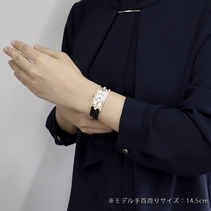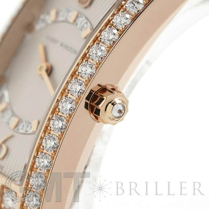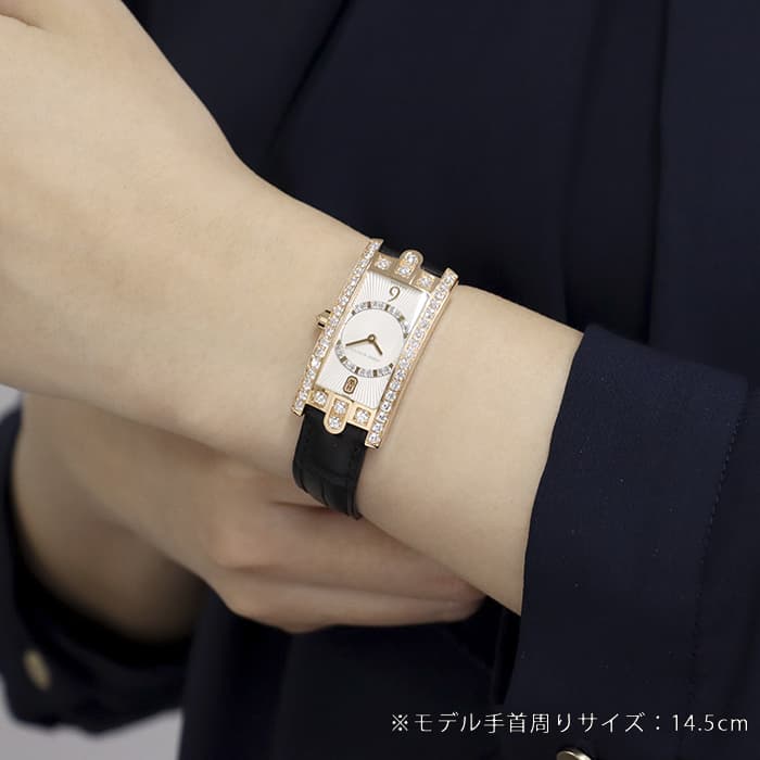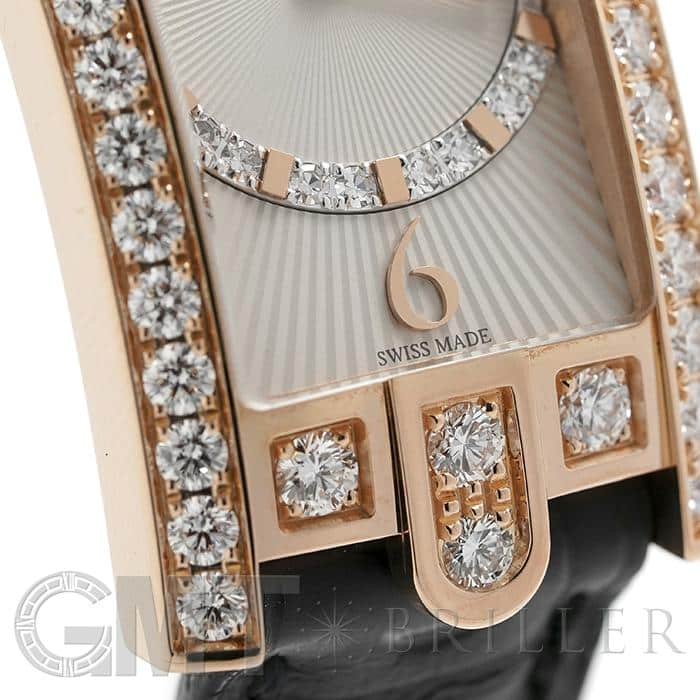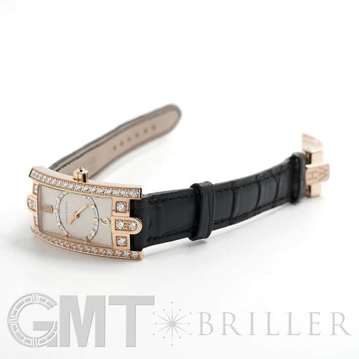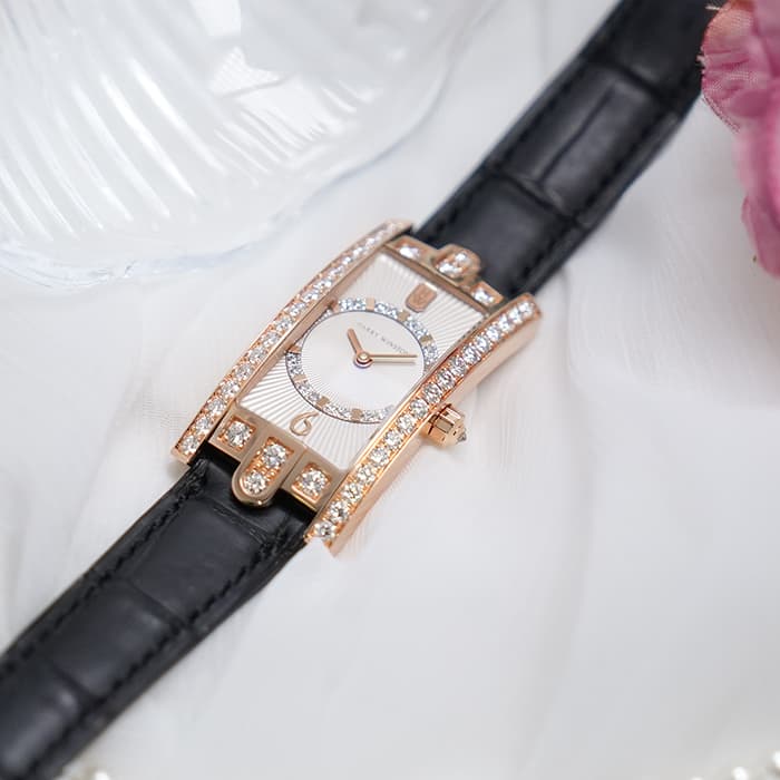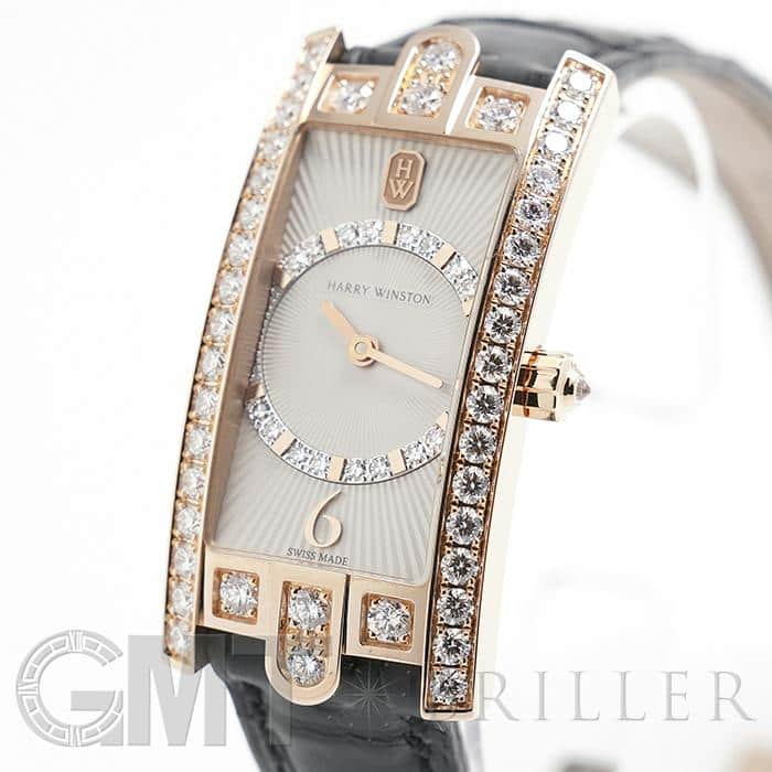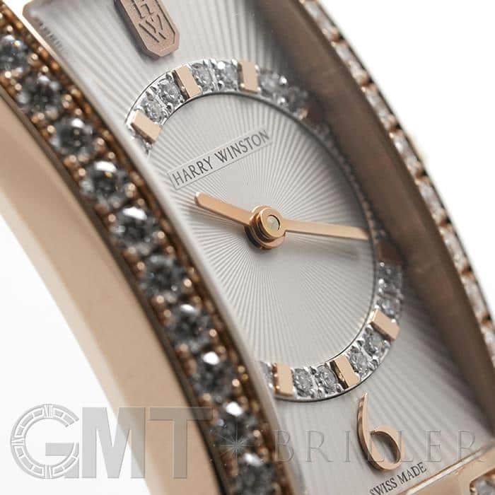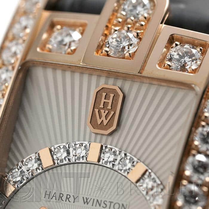ハリー・ウィンストンのニューヨーク本店のドアをモチーフとして表現したコレクションです。ローズゴールド製のレクタンギュラーケースのベゼルにダイヤモンドを贅沢にあしらい、サークル状にダイヤモンドをセット、サンレイ(放射状)にギョウシェ彫りされたシルバーダイヤルは「アールデコ」のモデル名のとおり直線と曲線が見事に融合した美しいデザインです。ベゼル部分やリューズ、ダイアル内に59個合計約1.69カラットものダイヤモンドが散りばめられており、ラグジュアリーで華やかに手元を彩ります。