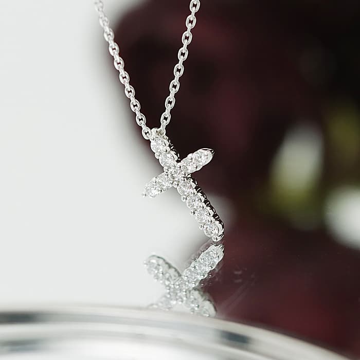 トップクラスのダイヤモンドのみを扱い、「21世紀のキングオブダイヤモンド」とも称されるイギリスのジュエラー「GRAFF(グラフ)」。シンプルなクロスモチーフのネックレスは、多くのシーンで着用できる万能なジュエリーです。