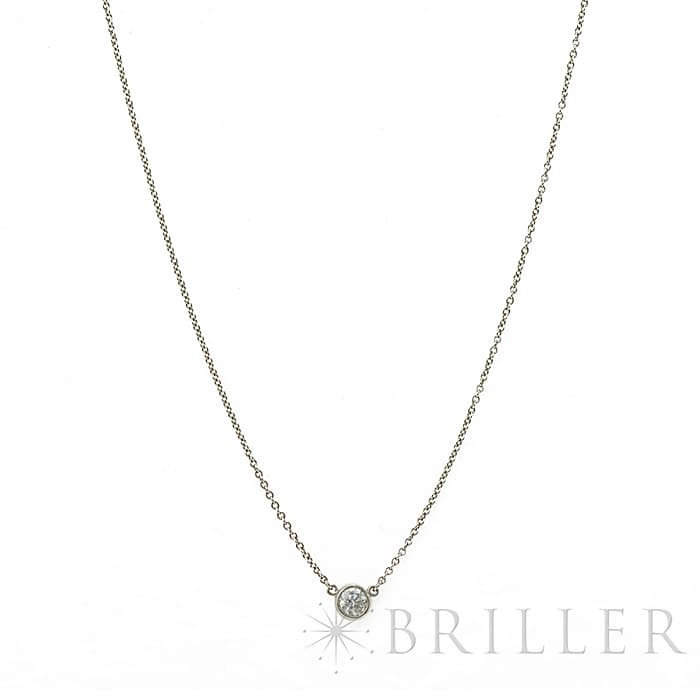 世界5大ジュエラーの1つであるティファニーは、鮮やかなティファニーブルーと呼ばれるブランドカラーで、ジュエリー好きでなくても知らない人がいないほどの知名度を誇るアメリカのブランドです。デザインの真のパイオニア、エルサ・ペレッティによって生み出されたティファニーを代表するコレクションの一つ「バイ ザ ヤード」。ダイヤモンドを爪で固定せず、ベゼルセッティングでダイヤモンドをセットするシンプルなデザインですのでダイヤモンドの美しさが際立つ一生モノと言えるネックレスです。