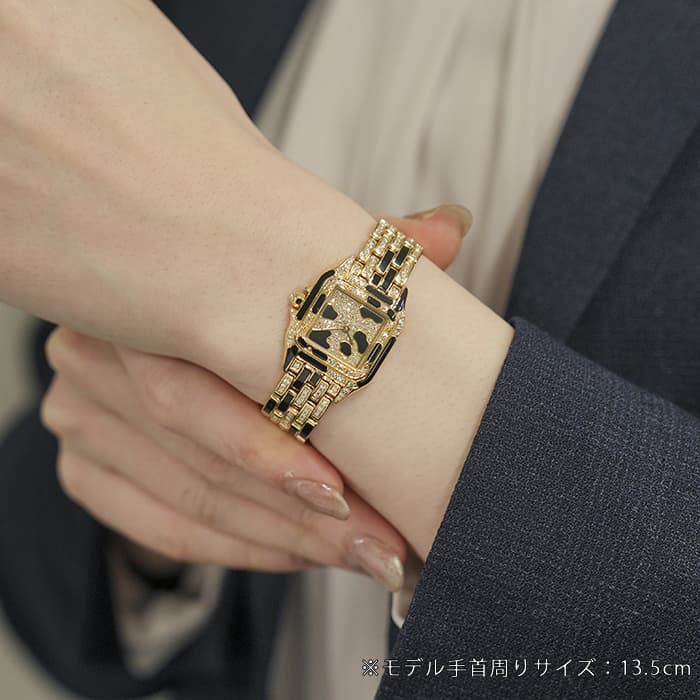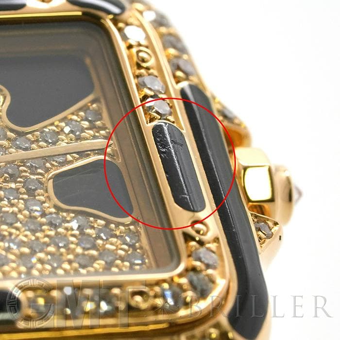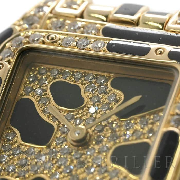 2000年前後にごく少数のみ生産された、パンテールのレアモデル「WF3027FA」。 イエローゴールド素材のケース・ブレスレットに、パヴェダイヤとブラックセラミックを敷き詰めたラグジュアリーでユニークなモデルです。