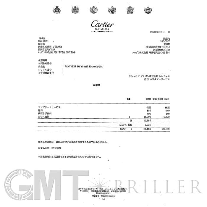 2023年12月 カルティエにてガラス交換を含むコンプリートサービス済み