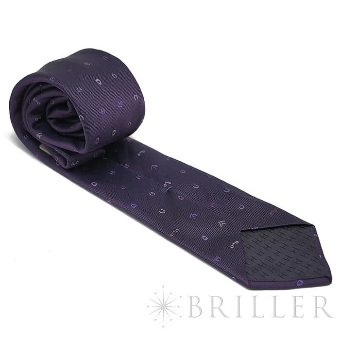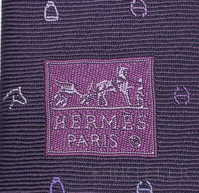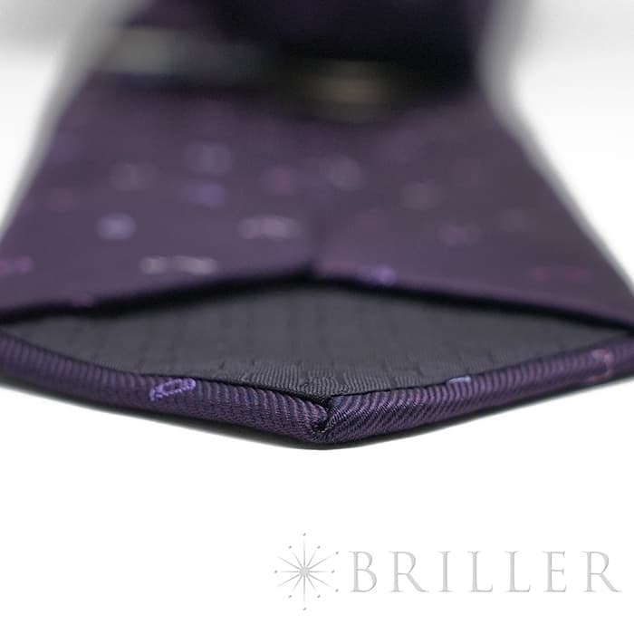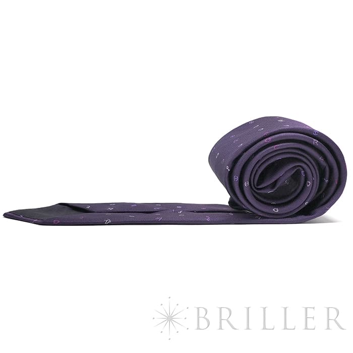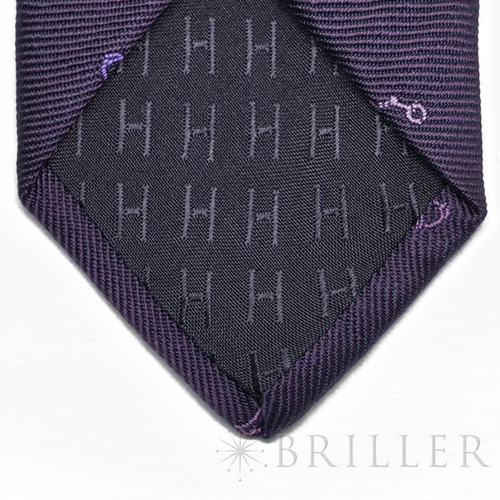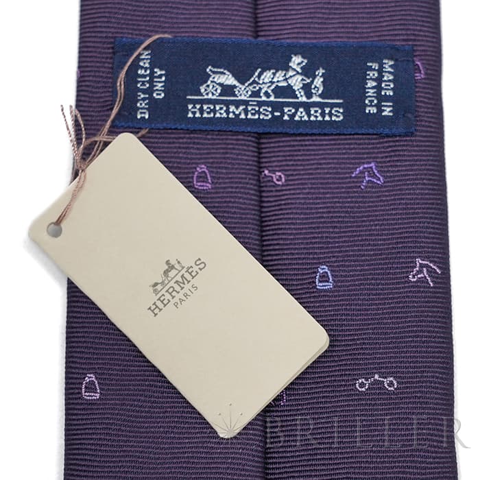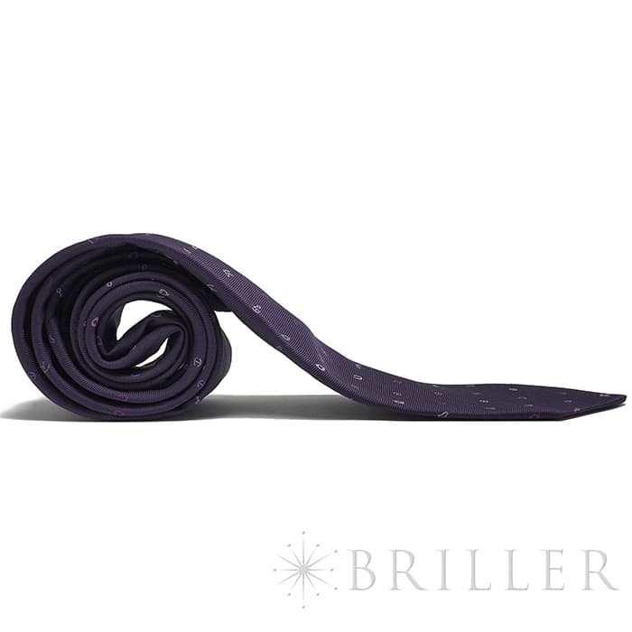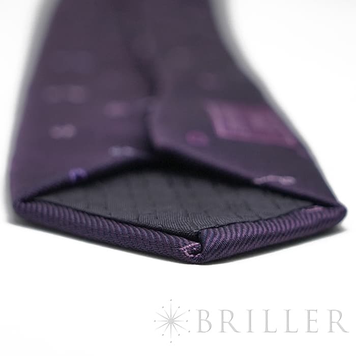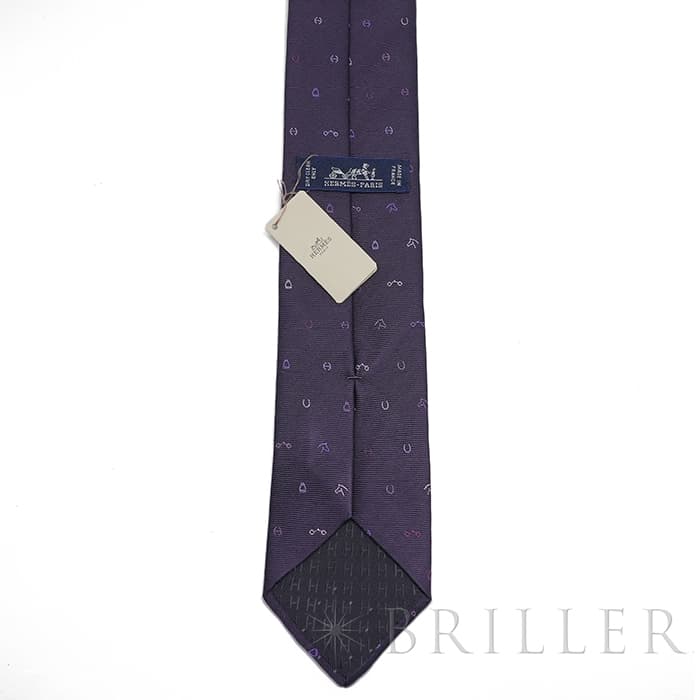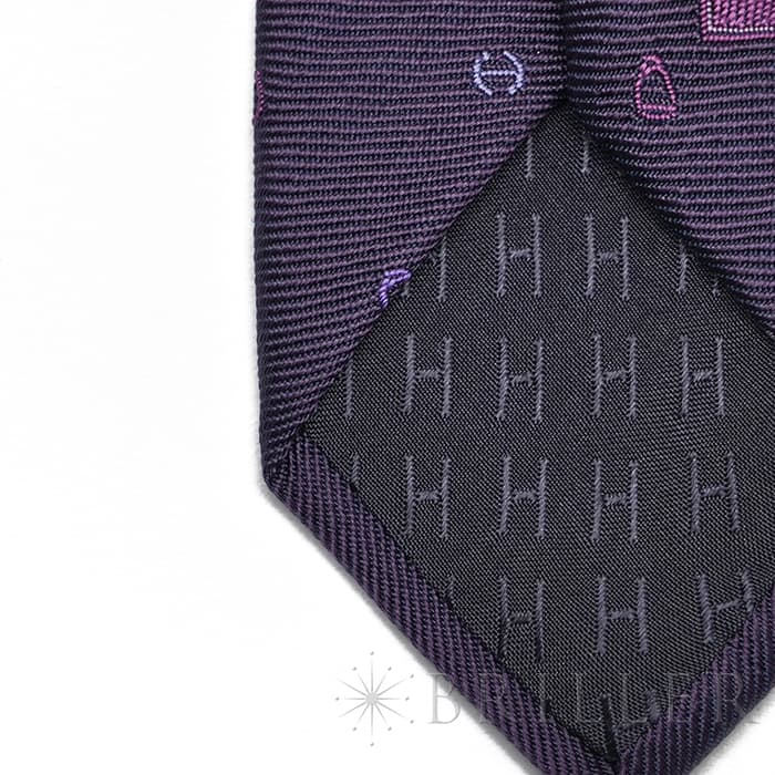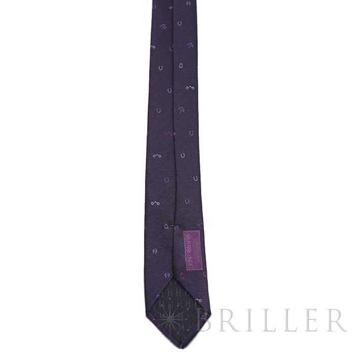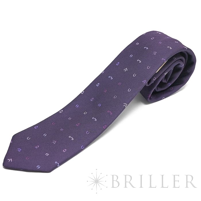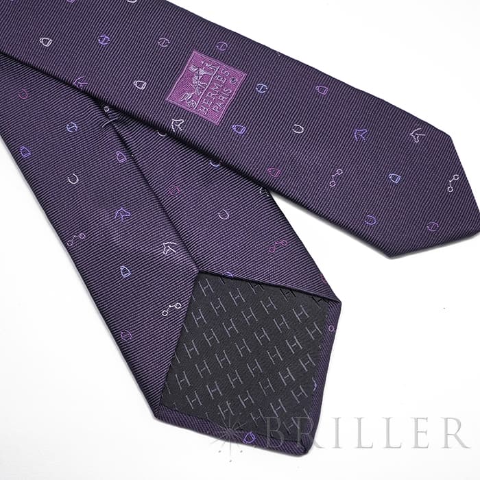 馬具一式が、刺しゅうでちりばめられたネクタイ。エレガントなパープルにシルク100%の質感がコーディネートにリュクスな雰囲気を醸し出しています。