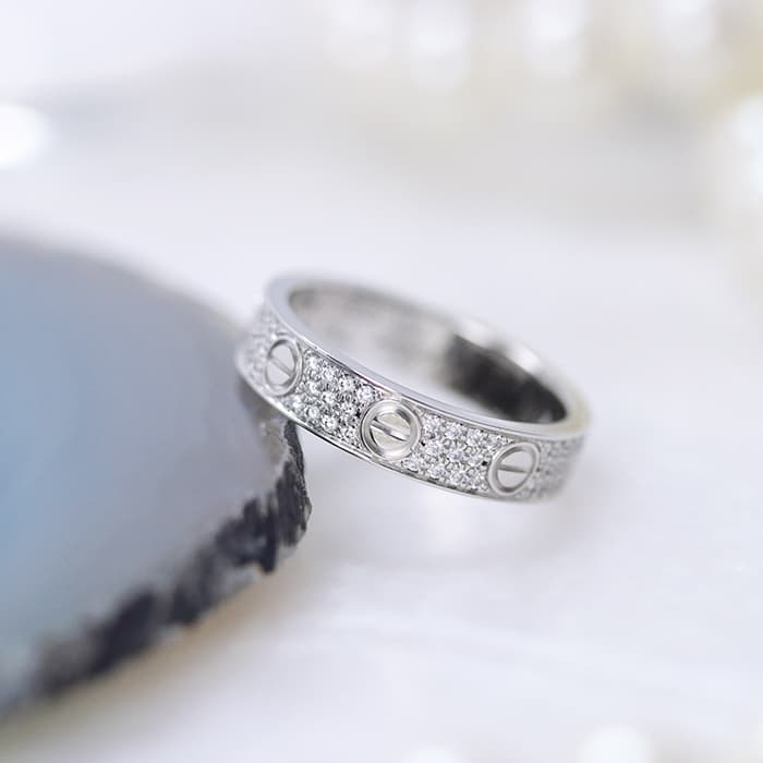 フランスで誕生し世界五大ジュエラーの一角である「カルティエ」。独創的なデザインや技術力の高さから圧倒的な支持を受けるブランドです。「LOVE」シリーズは人気が高くビスモチーフがデザインされているのが特徴。ラブリング スモールモデルは通常のラブリングに比べ細く、スッキリとした印象を与えます。ホワイトゴールド素材にダイヤが散りばめられており、より高級感を感じられる華やかなデザインとなっています。