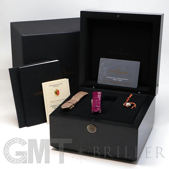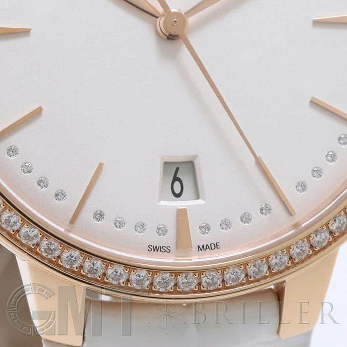 2004年に登場したパトリモニーコレクションは、創業当初に手掛けていたモデルから着想を受け制作されたモデルです。日付表示と3針のみの、時計の王道ともいえるシンプルかつクラシカルなスタイル。整然とした装いのシルバー文字盤の外周のミニッツカウンターとピンクゴールドケースのベゼルには、117個のラウンドカット ダイヤモンドがセットされ、さりげない高級感を演出します。シースルーバックからはジュネーブ・シールを取得した22Kゴールド製のローターの自動巻きムーブメント「Cal.2450 Q6/3」の美しい駆動を眺めることが出来ます。パワーリザーブは約40時間と、デザインだけでなく実用性も申し分なしの1本です。 替えトラップが別途2本付いていますので、気分に合わせて付け替えてお楽しみください。