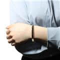 メジャーを手首に巻きつけて、手首のサイズを測ります。 サイズを確認して、ピッタリのサイズをお知らせください。お知らせいただいたサイズを元に、「標準的な余裕」がでるようにブレスレットサイズを調整いたします。 写真の場合、手首周りは「14cm」となります。