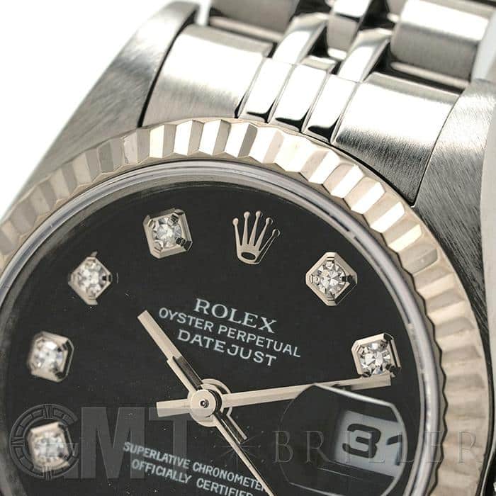 ロレックス デイトジャスト 79174G ブラック 10Pダイヤ ROLEX ロレックスを代表するレディースコレクション「デイトジャスト」。 基本的にはステンレス素材を使用していますが、ベゼルのみにホワイトゴールドを採用し、鏡面加工と艶無し加工を施すことで、大変美しく輝く時計に仕上がっています。 ブレスレットもフィット感が出やすいように、1つ1つのパーツが細かくなっていますので、着け心地も良い仕様となっています。 現在は比較的安い価格で購入できるので、普段使いに大変お勧めの商品となっております。 保証書日付 2005年6月 2024年3月 当社提携修理工房にてオーバーホール・外装仕上げ済み ベゼルに傷が残ります。 2コマ欠品しております。腕周りをお確かめの上、ご購入ください。 当社の中古品はインターネットでも安心してご購入頂けるよう、しっかりとした点検整備を行っております。 ロレックス 時計の買取り・下取りも行っておりますので、お気軽にご相談ください。