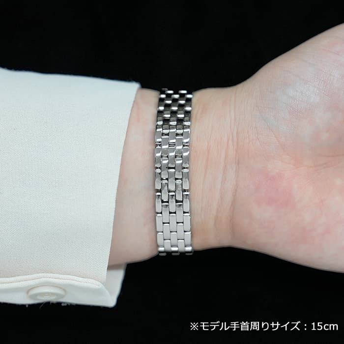 ベゼルには無数のダイヤモンドがセッティングされており、世界五大ジュエラーとして名を馳せるカルティエの高品質なダイヤモンドをお楽しみいただけます。