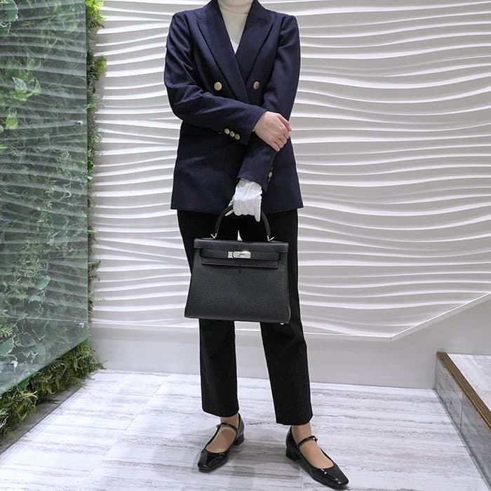 「ケリー」は元々「サック・ア・クロア」という名前で1935年に誕生。女優であったグレース・ケリーがモナコ王妃となり、妊娠した様子を鞄でとっさに隠した写真が話題に。後に「ケリーバッグ」と称されました。トゴはほどよく張りのあるやわらかな質感で、色は「ブラック」なのでファッションアイテムとしては非常に合わせやすく人気の高いカラーです。28サイズはハンドバッグとして軽やかに持ち運ぶことができつつ、ハンドルに腕を通して持つこともできる絶妙なサイズ感。ストラップを付けると肩から掛けることもできるので、装いやシーンに合わせて様々なスタイルでお楽しみいただけます。